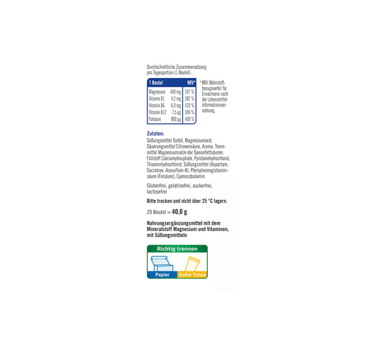 Magnesium 400 + B1 + B6 + B12 + Folic Acid 800 Direct Granules 20 pcs., 40 g