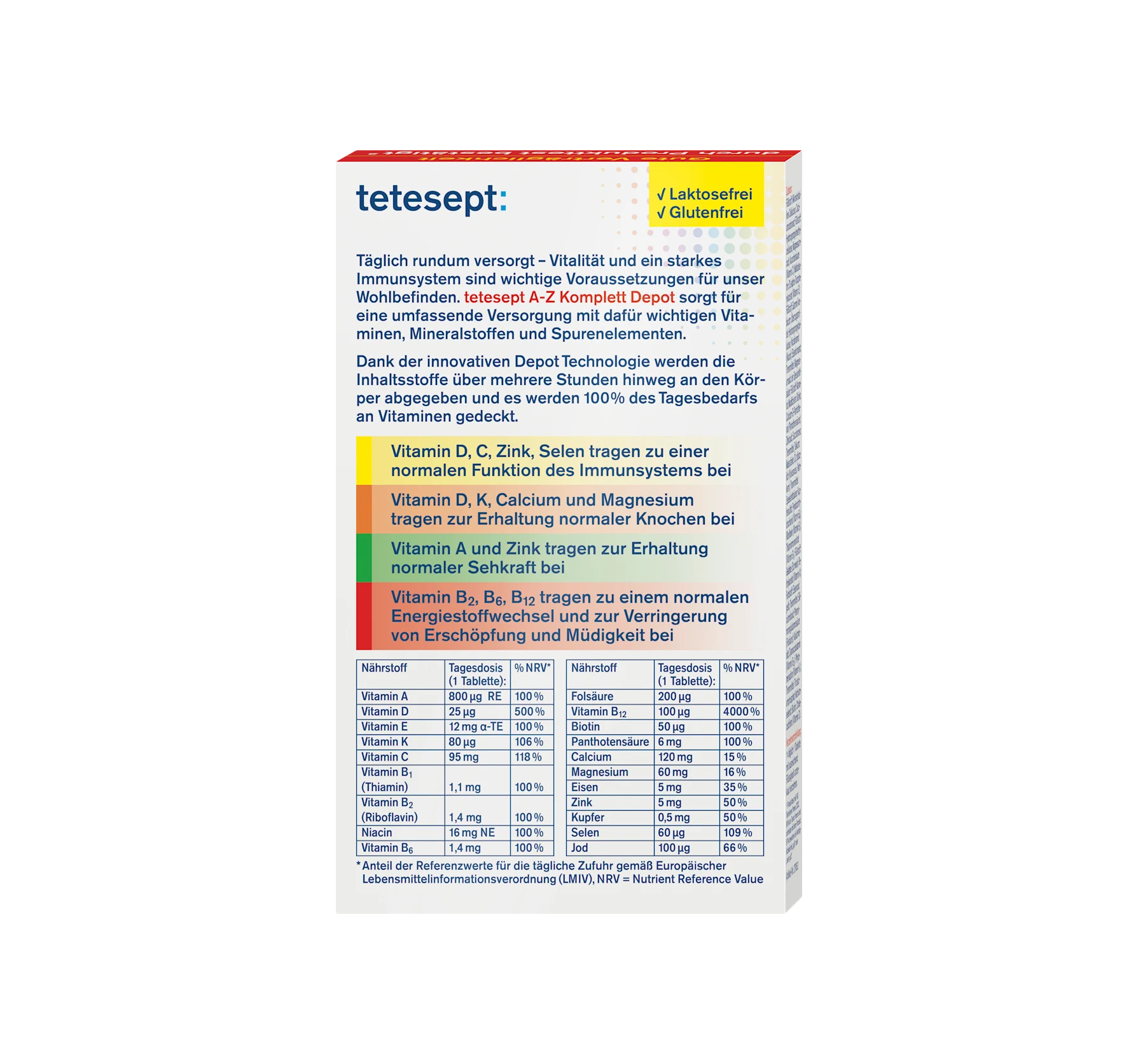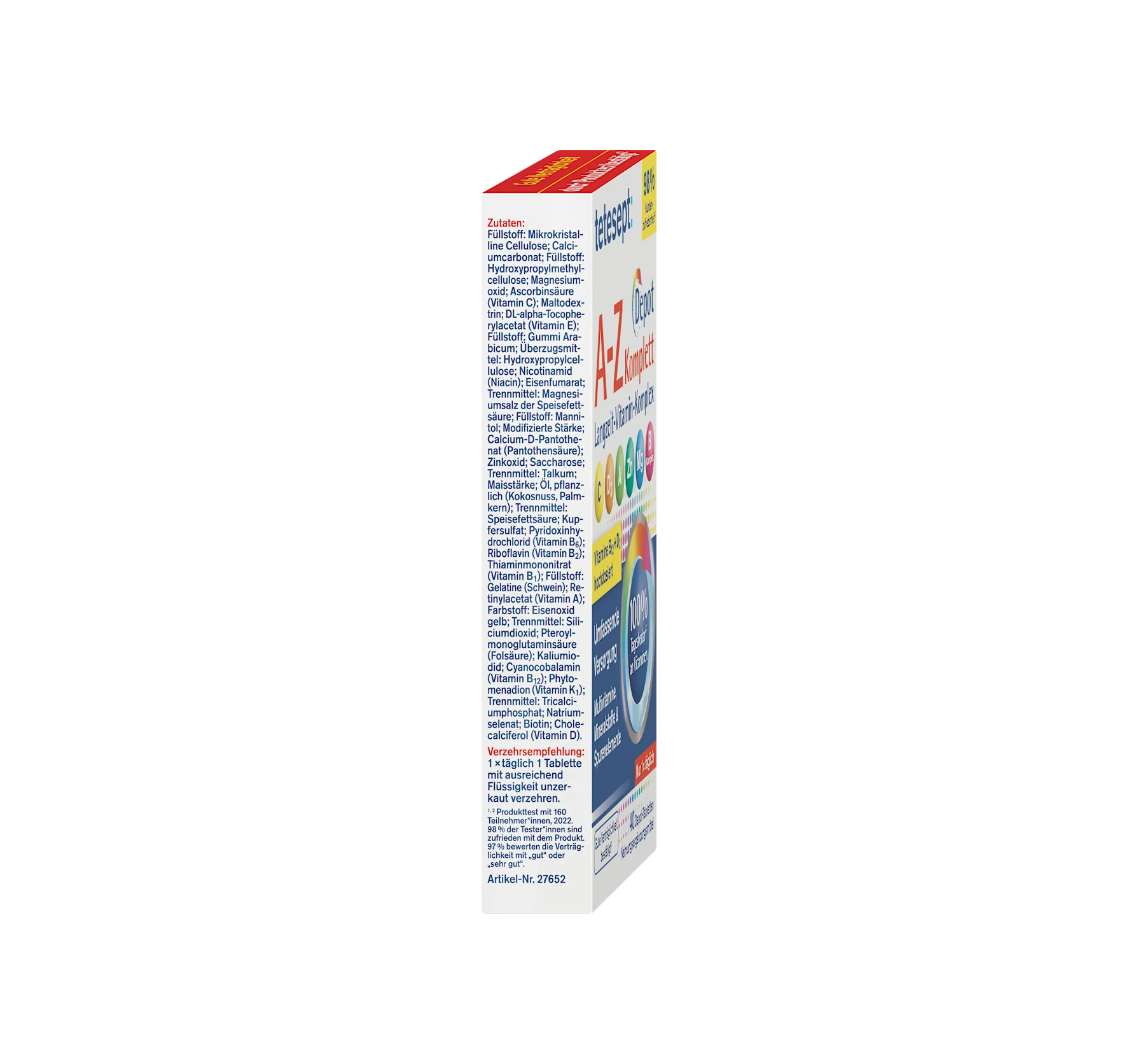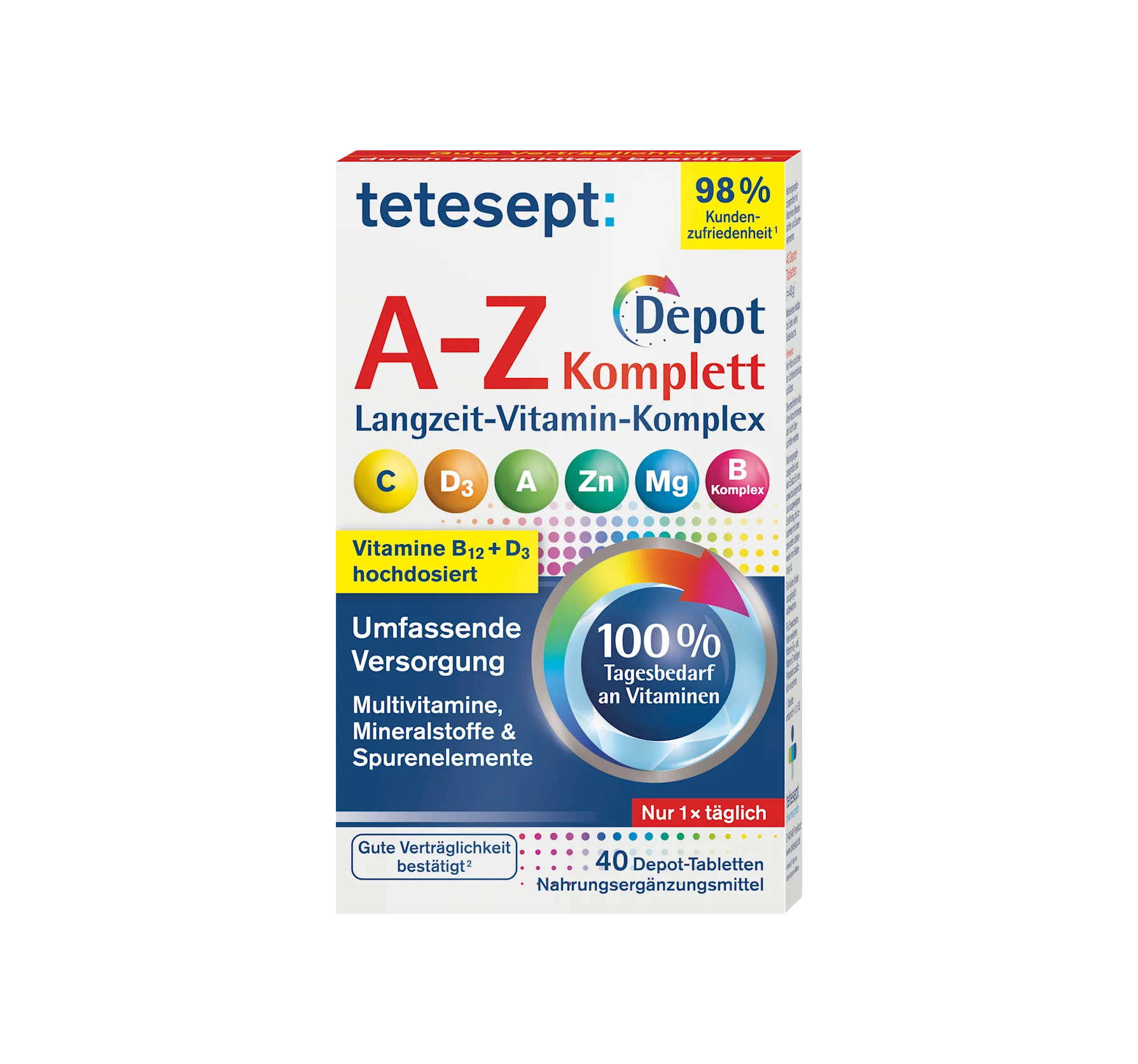 tetesept's AZ tablets provide you with a comprehensive supply of specially selected nutrients for vitality, well-being, and concentration. Vitamin C, zinc, and selenium contribute to the normal ...