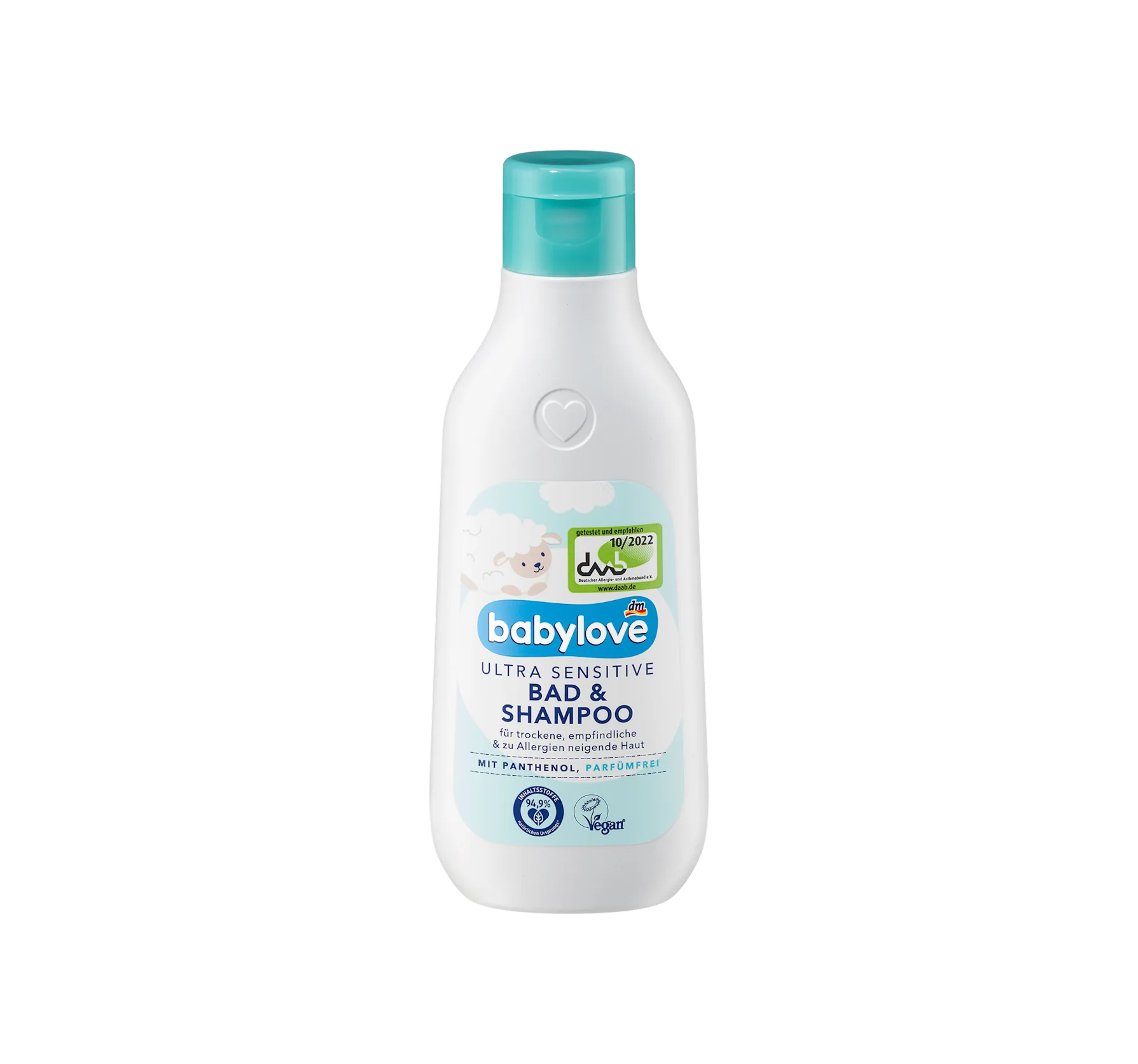 The Ultra Sensitive 2-in-1 Bath & Shampoo from babylove was specially developed for dry, sensitive, and allergy-prone baby skin. Thanks to its mild formula with panthenol, the skin is gently...