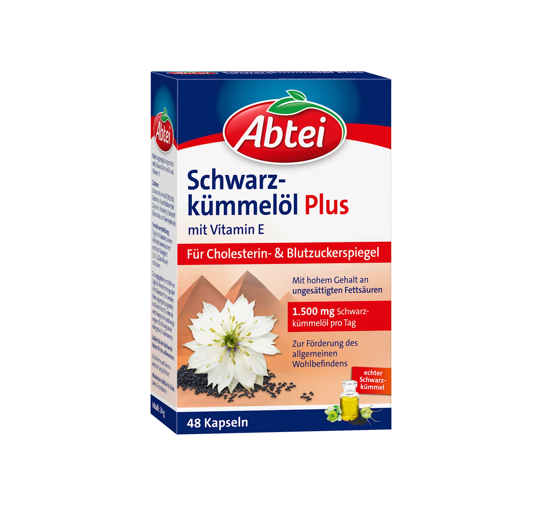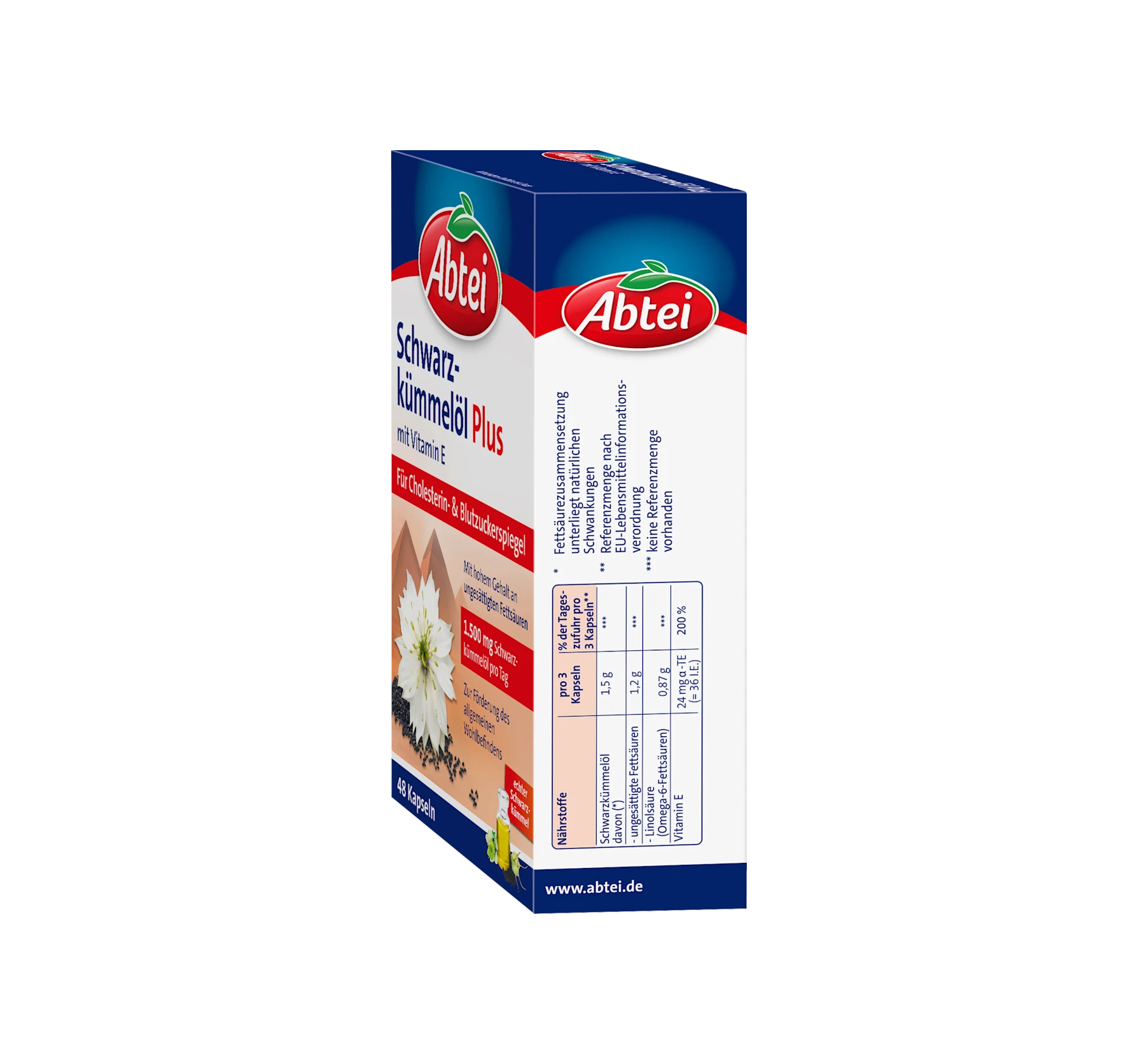 Abtei Black Cumin Oil Plus is extracted from the seeds of the true black cumin and contains omega-6 fatty acids.