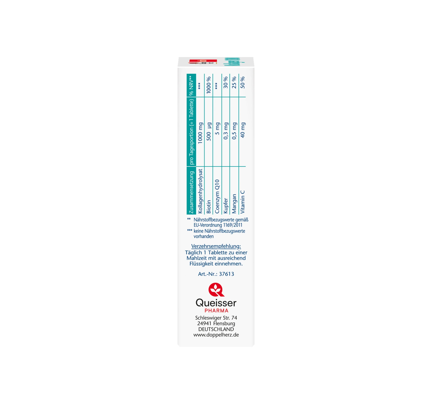 EXACT PRODUCT NAME: DIETARY SUPPLEMENT TABLETS WITH COLLAGEN HYDROLYSATE, VITAMINS, TRACE ELEMENTS AND COENZYME Q10 INGREDIENTS: COLLAGEN HYDROLYSATE (BEEF), BULKING AGENT DICALCIUM PHOSPHATE, VITAMIN C, ANTI-CAKING AGENT CROSS-LINKED CARBOXYMETHYLCELLULOSE, GLAZING AGENT HYDROXYPROPYLMETHYLCELLULOSE, ANTI-CAKING AGENT MAGNESIUM SALTS OF FATTY ACIDS, ANTI-CAKING AGENT SILICON DIOXIDE, STARCH, COENZYME Q10, ANTI-CAKING AGENT TALC, BULKING AGENT MICROCRYSTALLINE CELLULOSE, HUMECTANT GLYCEROL, MANGANESE SULFATE, COLOR IRON OXIDES AND IRON HYDROXIDES, COPPER SULFATE, BIOTIN