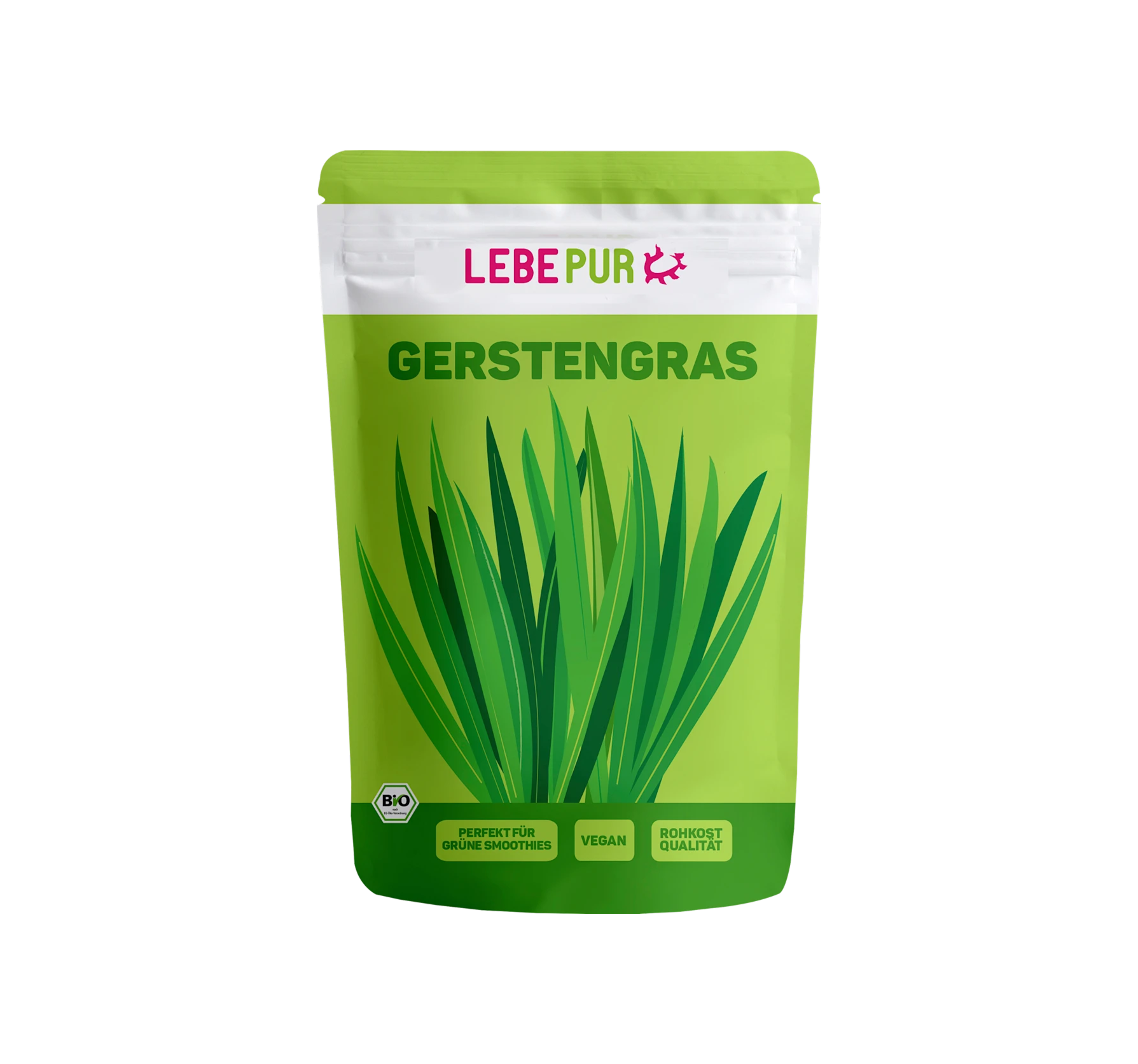 Gently dried organic plant powder in raw food quality: Lebepur barley grass from certified organic cultivation is ideal as an ingredient in green smoothies. Free from flavors, colors, and preser...