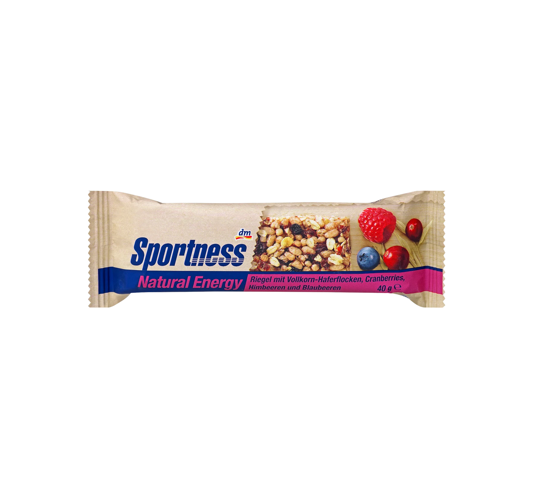 Ingredients: Sportness Natural Energy Bar with Whole Grain Oat Flakes, Cranberries, Raspberries, and Blueberries