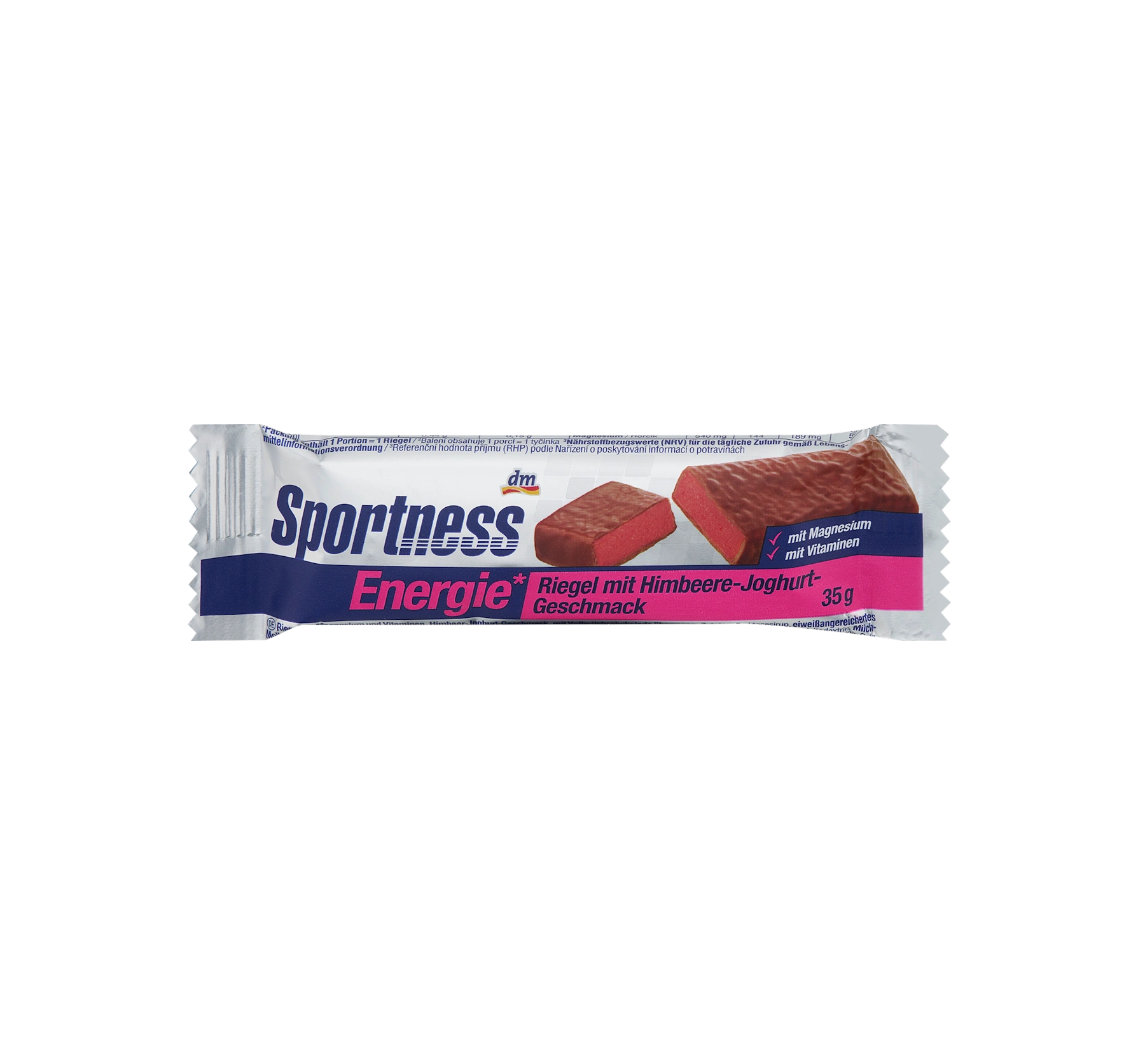 With milk chocolate, magnesium & vitamins. The Sportness Raspberry Yogurt energy bar is packed with magnesium and vitamins. It boasts a fruity raspberry yogurt flavor and is also covered in ...