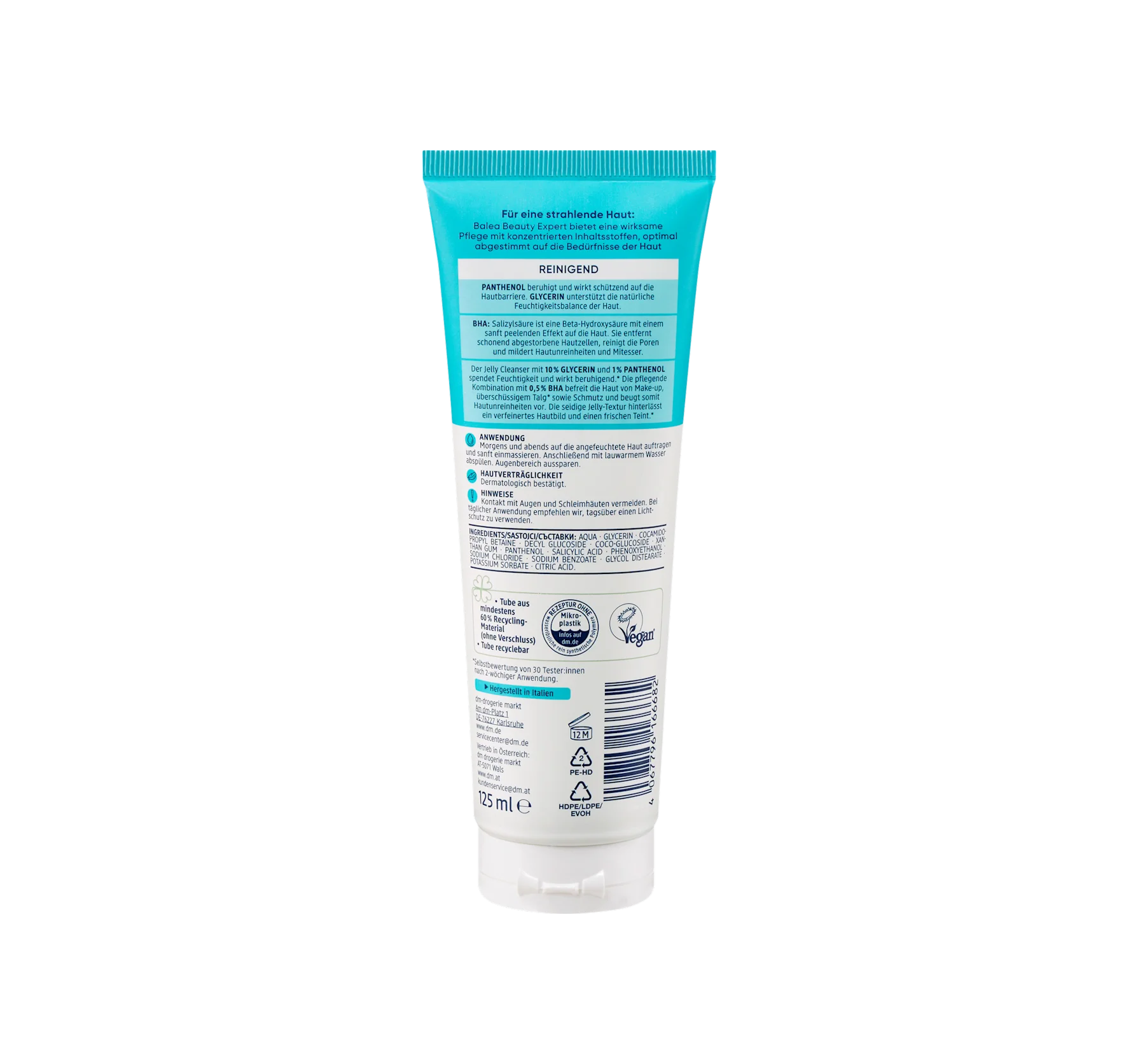 Balea's Expert Jelly Cleanser is a water-based cleansing gel that gently removes makeup, excess sebum*, and dirt. Thanks to 10% glycerin and 1% panthenol, the skin is moisturized and soothed* du...