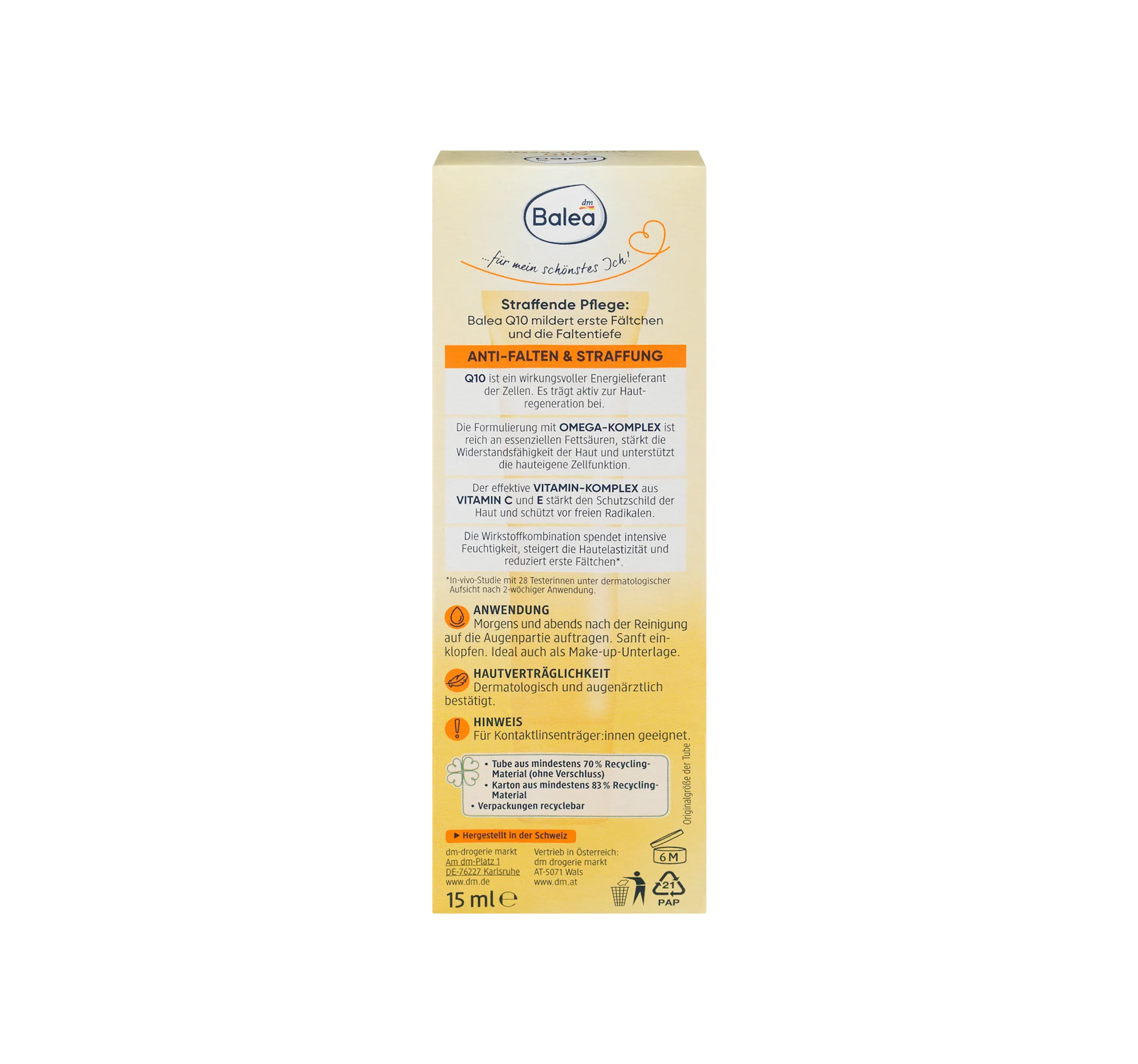 Balea Q10 Anti-Wrinkle Eye Cream is a firming treatment that can soften the appearance of the first wrinkles and reduce their depth. The Q10 it contains is an effective energy supplier for cells...