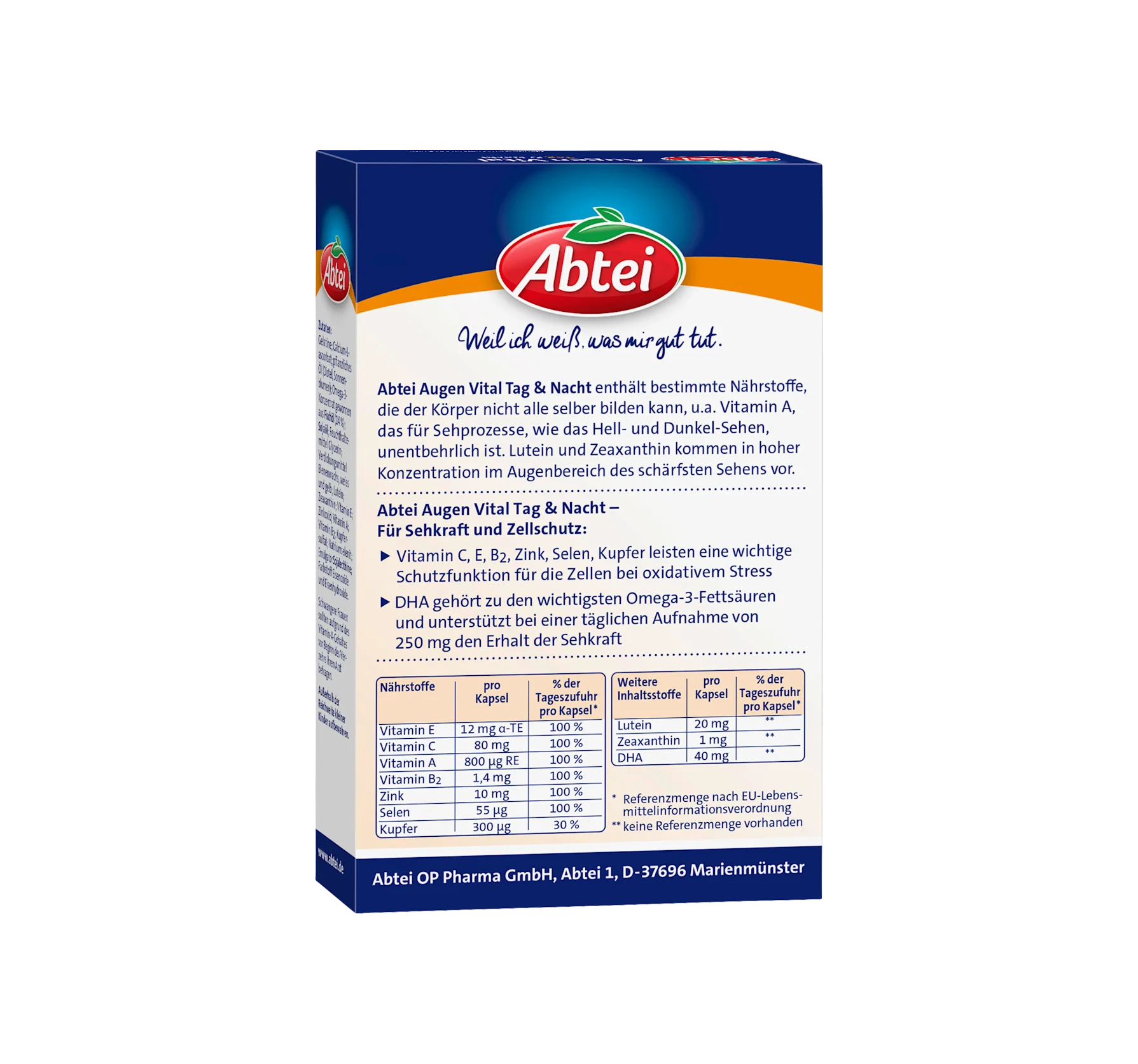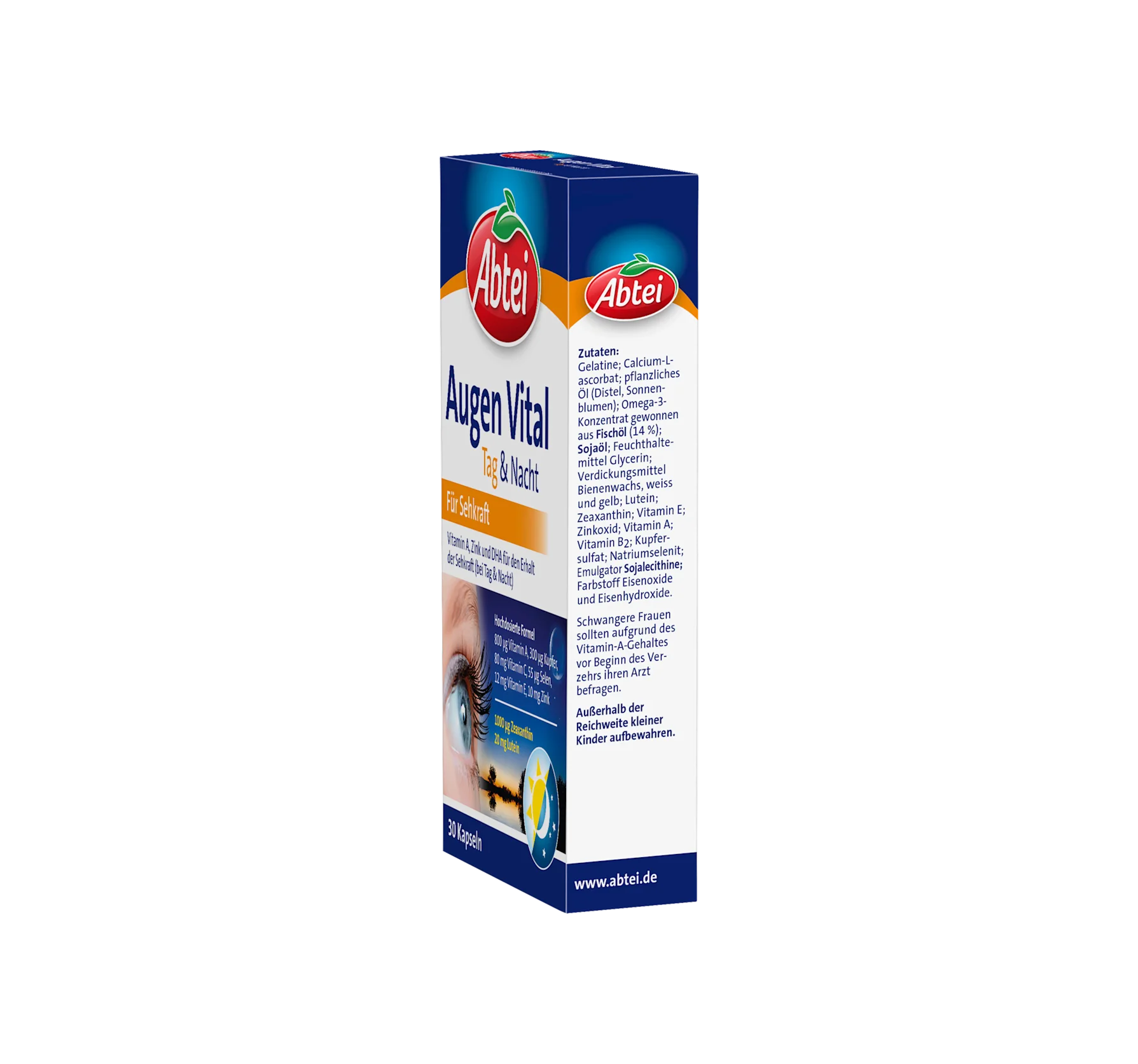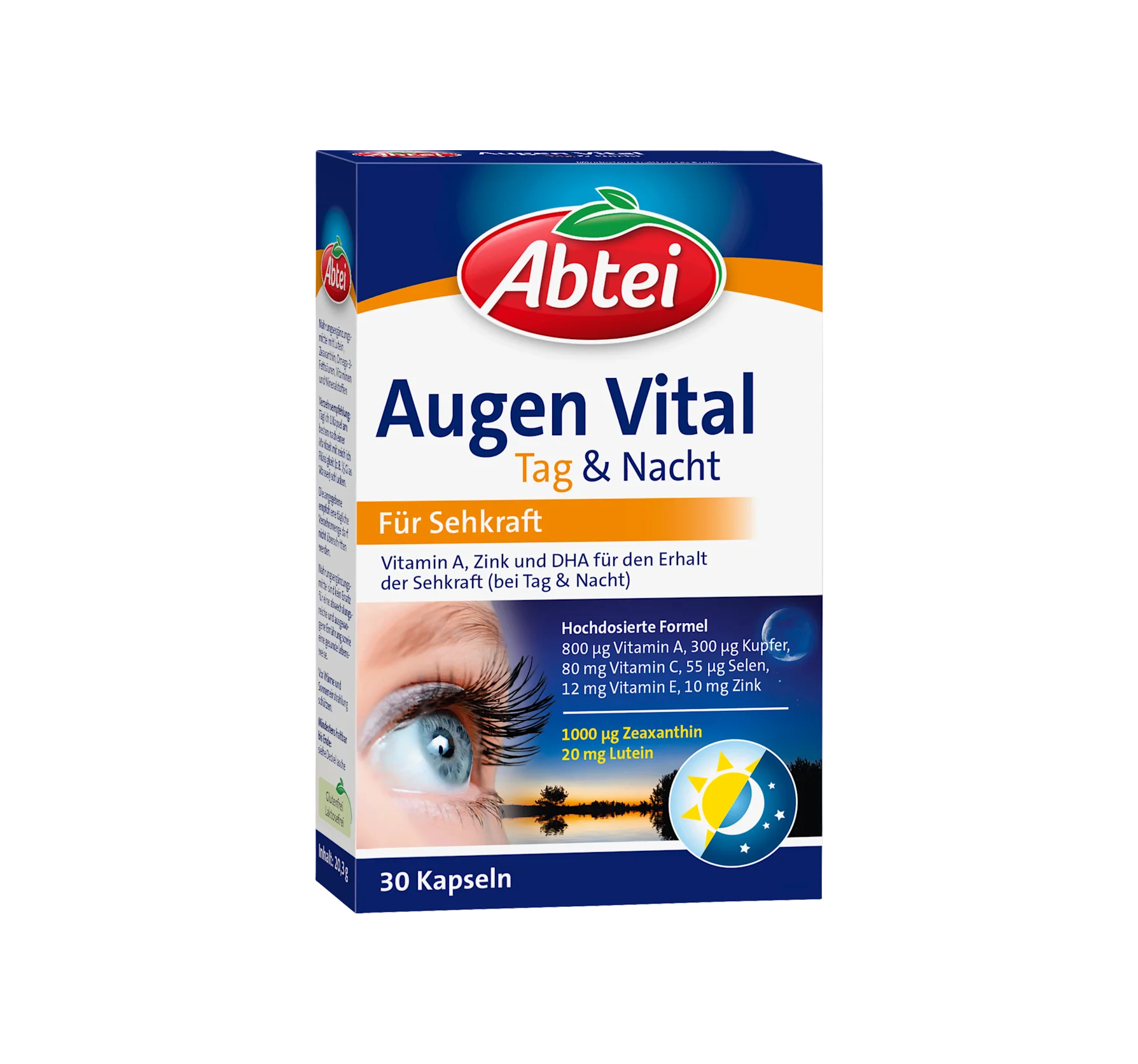 Abtei Augen Vital Day & Night contains certain nutrients that the body cannot produce itself, including vitamin A, which is essential for visual processes such as light and dark vision. Lute...
