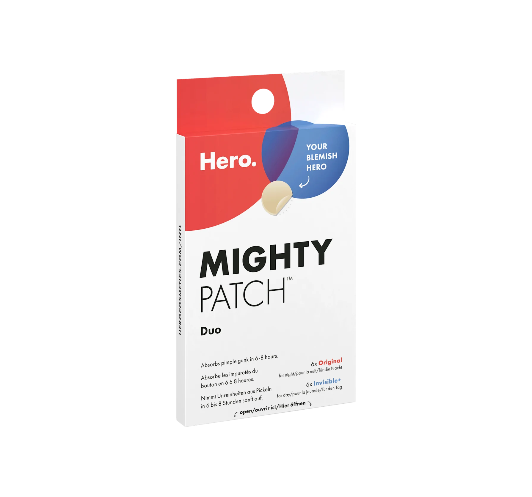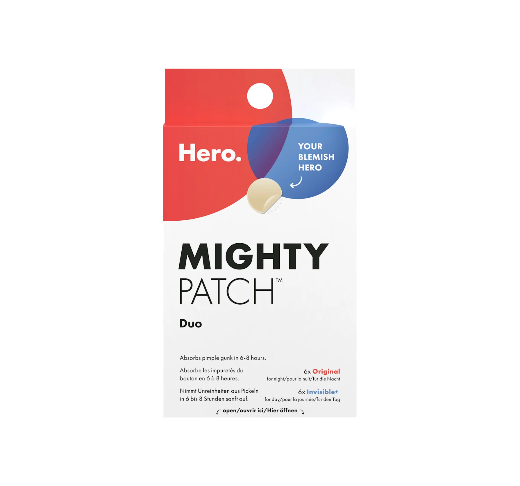Hero's Mighty Patch Duo can protect the skin and visibly heal blemishes. Impurities are gently absorbed from pimples in six to eight hours.