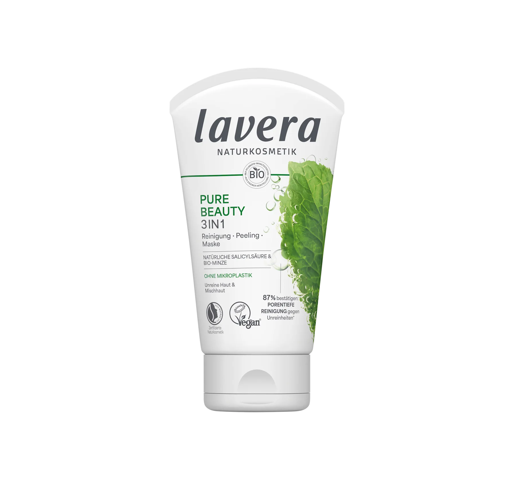 Multifunctional facial cleanser. Triple action for facial care. With salicylic acid and organic mint. Gently frees the skin of dead skin cells. Certified natural cosmetics. The 3-in-1 Pure Beaut...