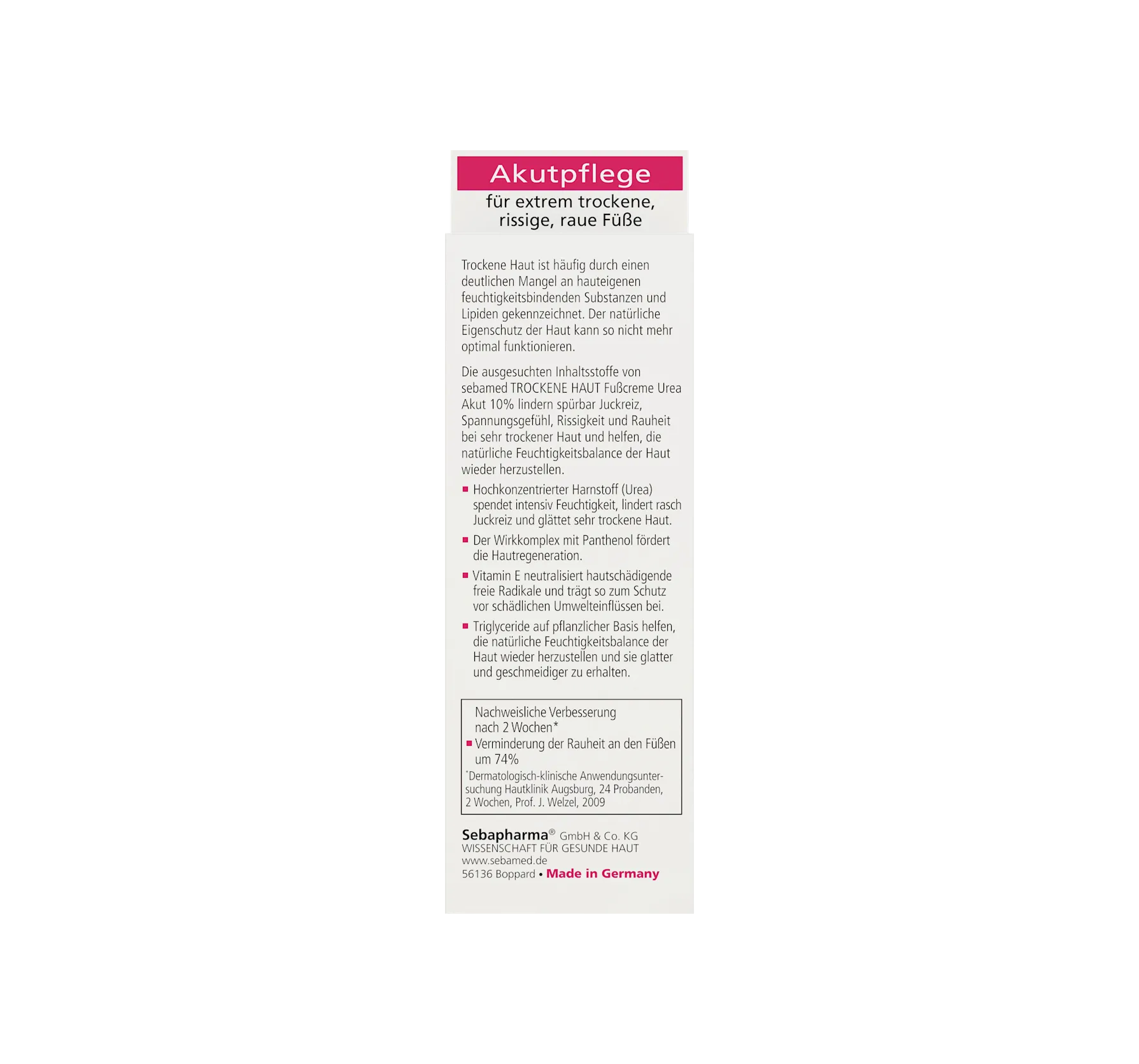 The foot cream with 10% urea is intensively moisturizing and noticeably relieves itching. It helps restore the skin's natural moisture balance, making it smoother and more supple.