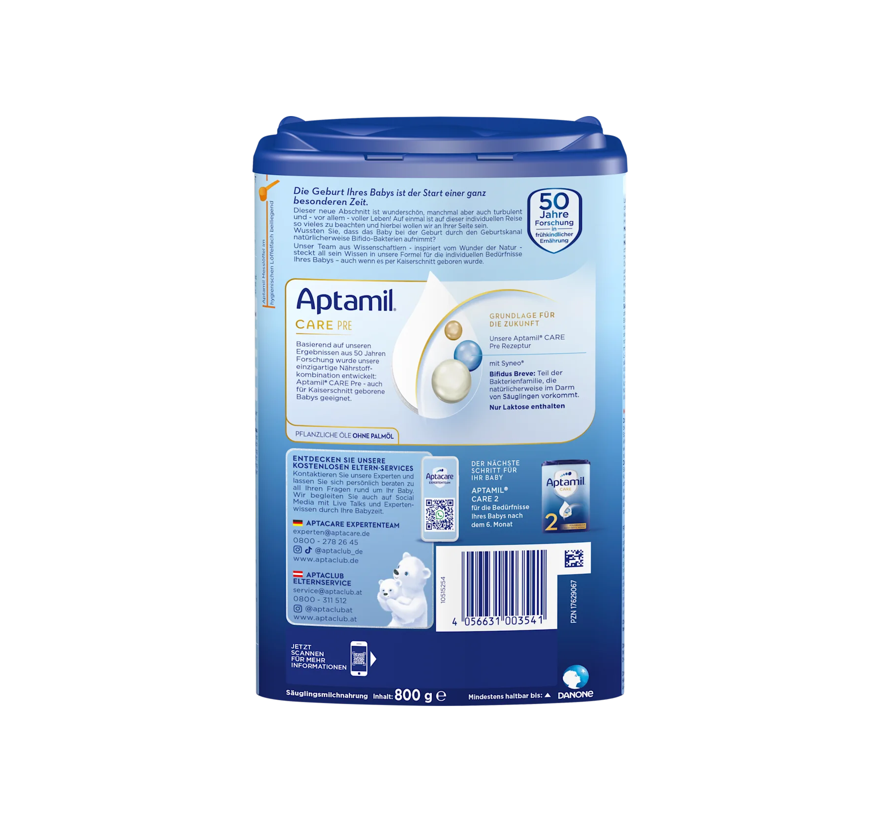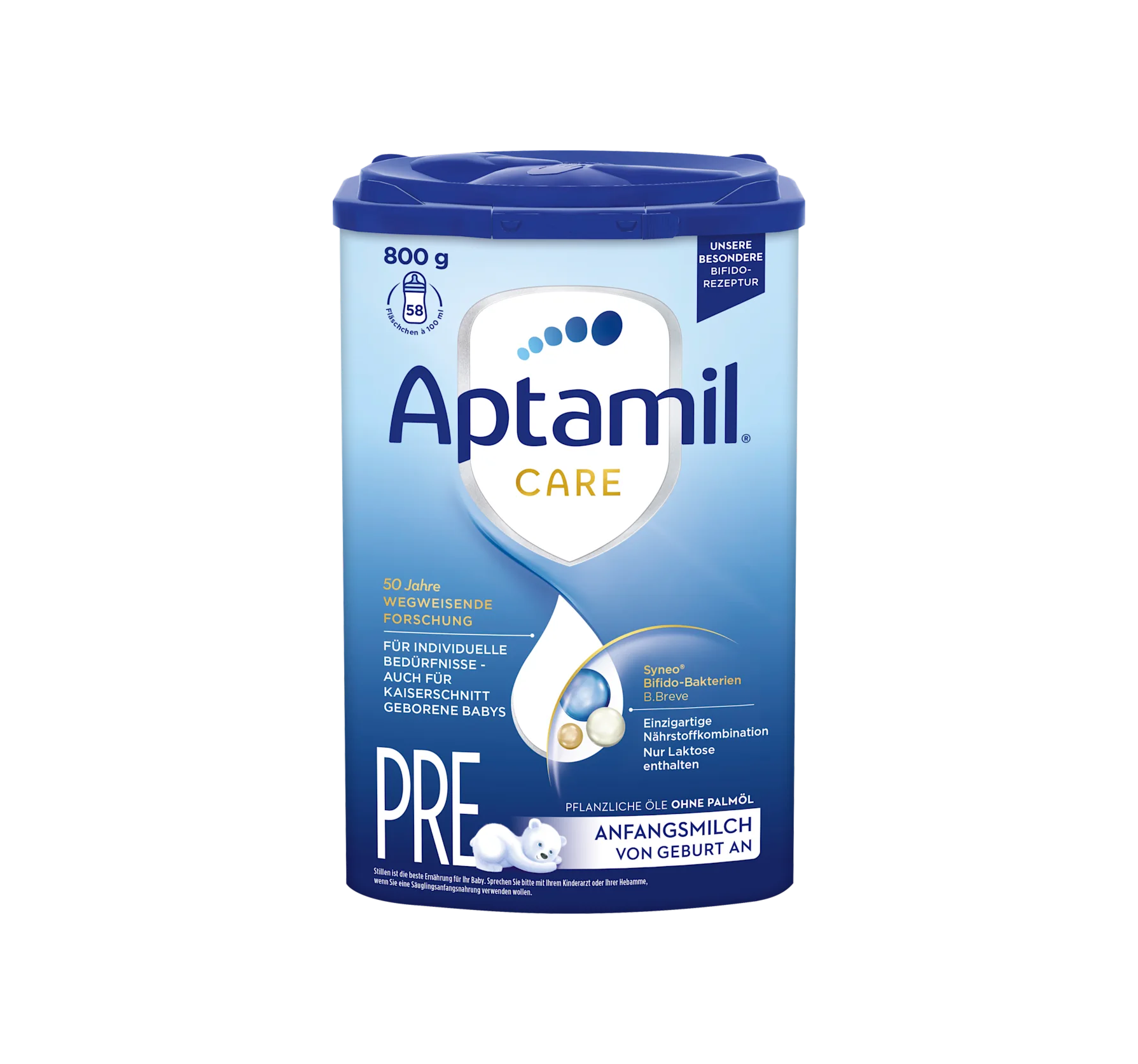 Aptamil Care PRE Infant Milk is suitable from the very first moments with your baby, i.e., right from birth. It impresses with its special bifido formula and is also suitable for babies born by ...