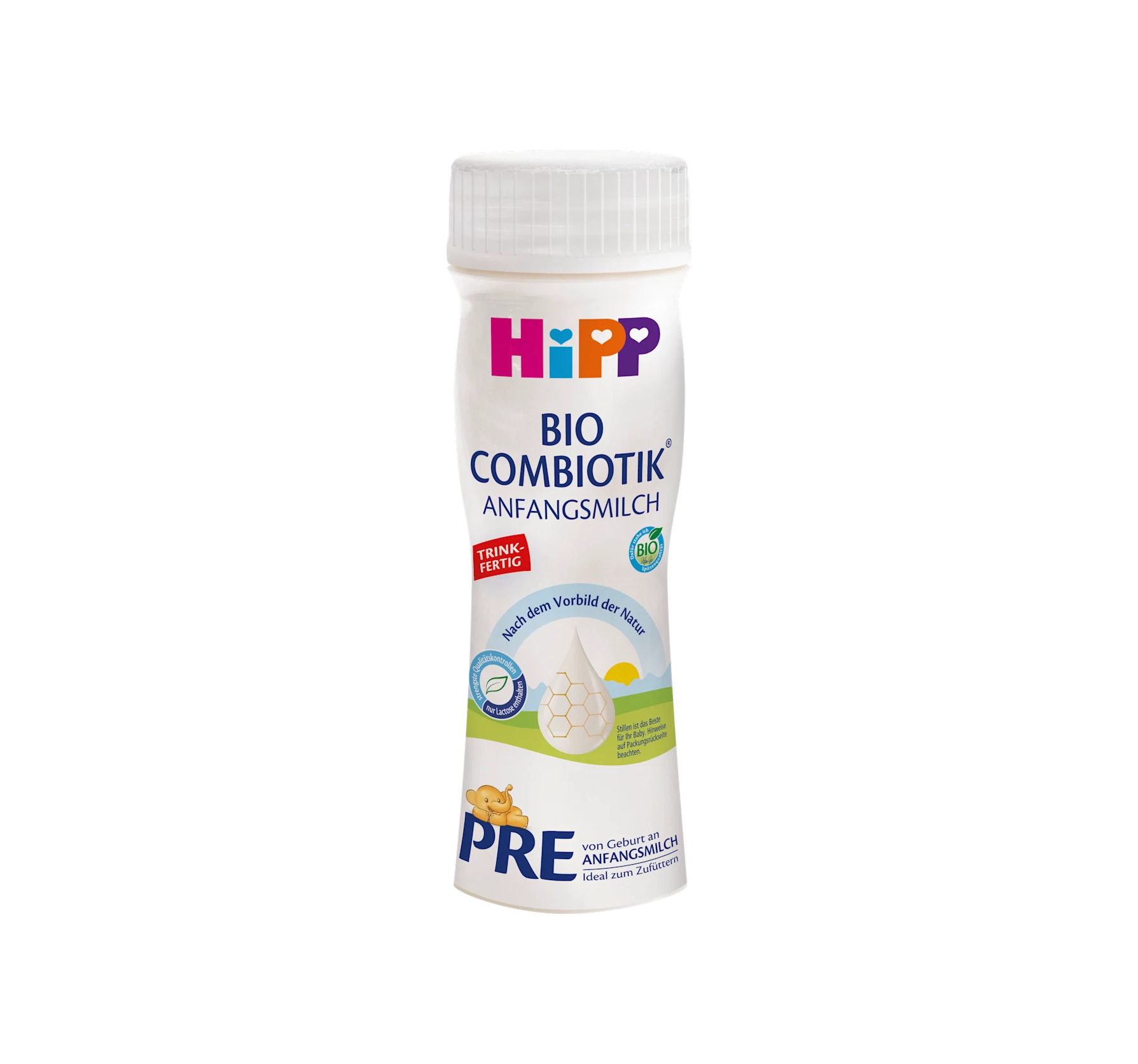 HiPP's ready-to-drink Pre Combiotik infant formula from birth offers a delicious meal for newborns. Thanks to the handy bottle, the formula is also particularly practical for on-the-go trips or ...