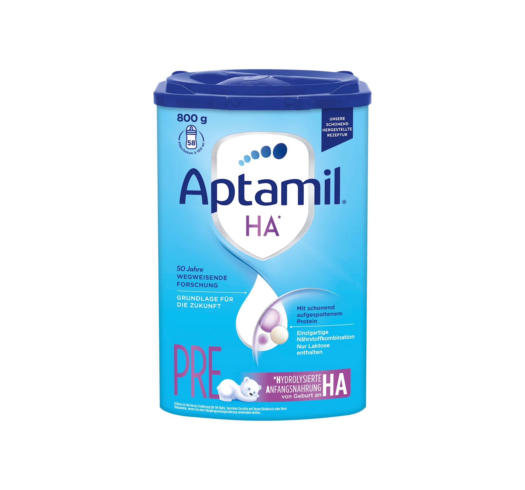 Aptamil HA PRE (800 g) is suitable from the very first moments with your baby, i.e., from birth. It contains gently digested protein and lactose, thus providing a very good foundation for your b...