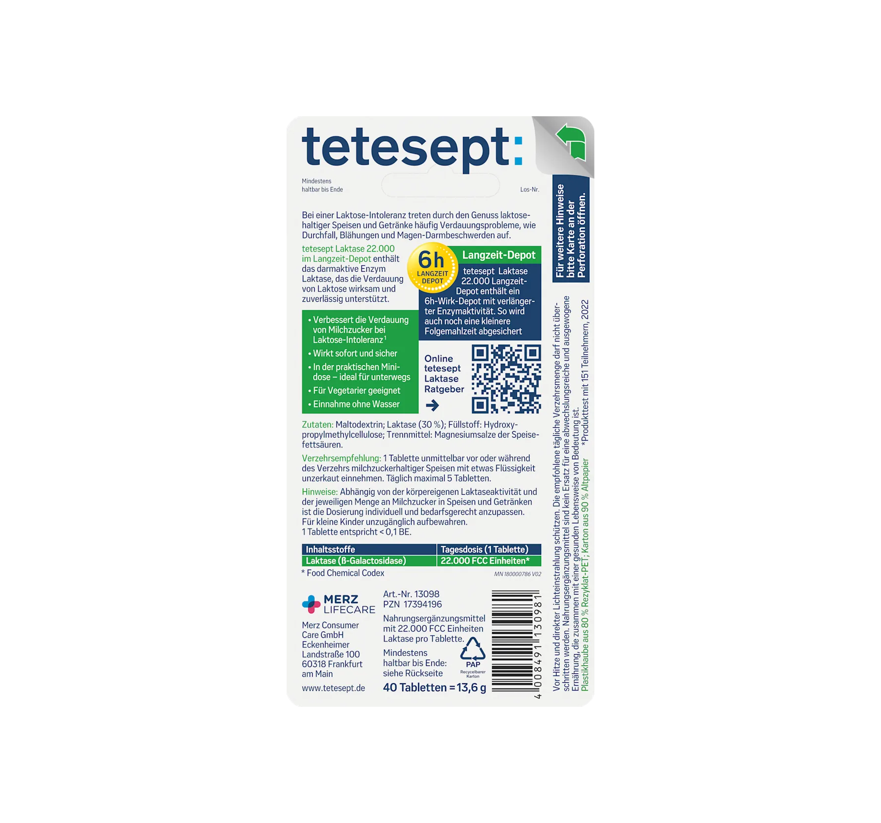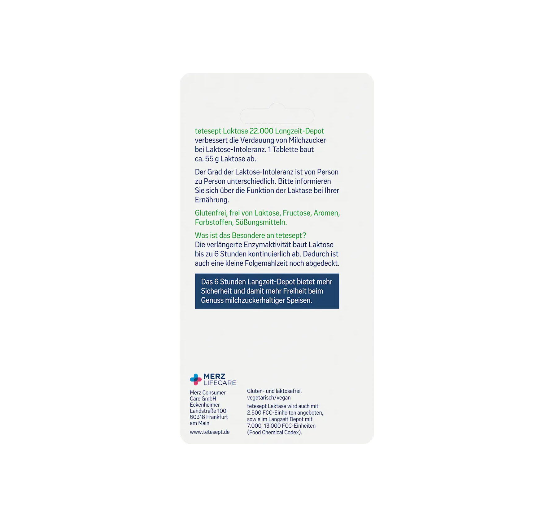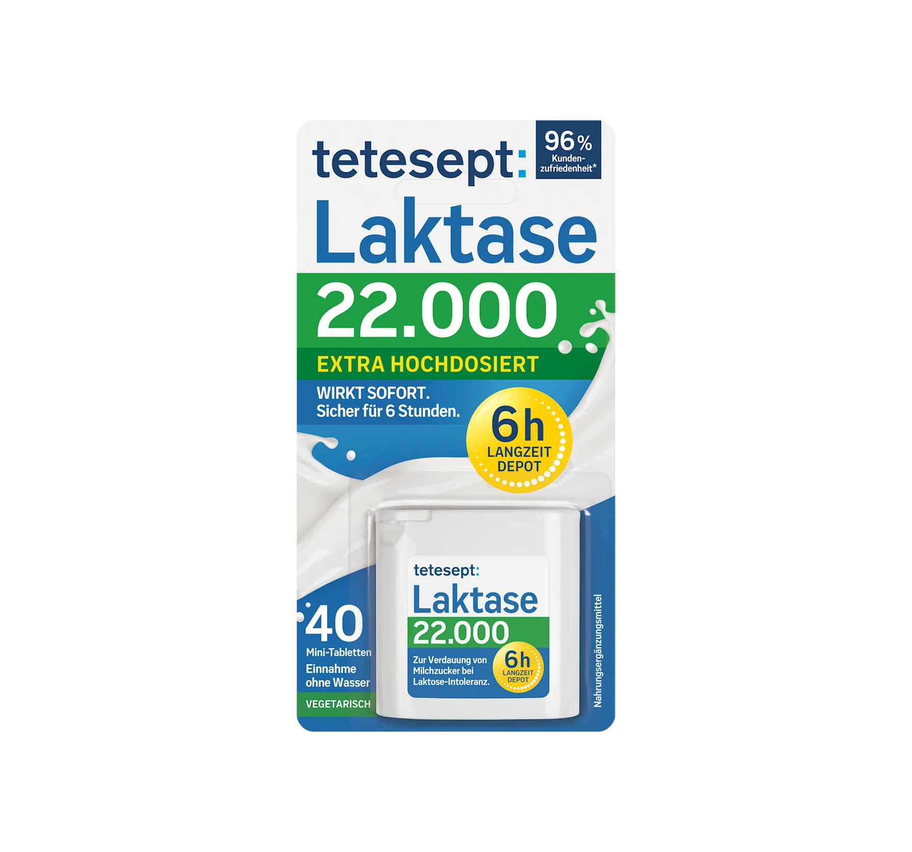 tetesept Lactase 22,000 with long-term depot for the digestion of lactose in cases of lactose intolerance offers strong efficacy thanks to its 6-hour long-term depot and extra-high dosage. It wo...