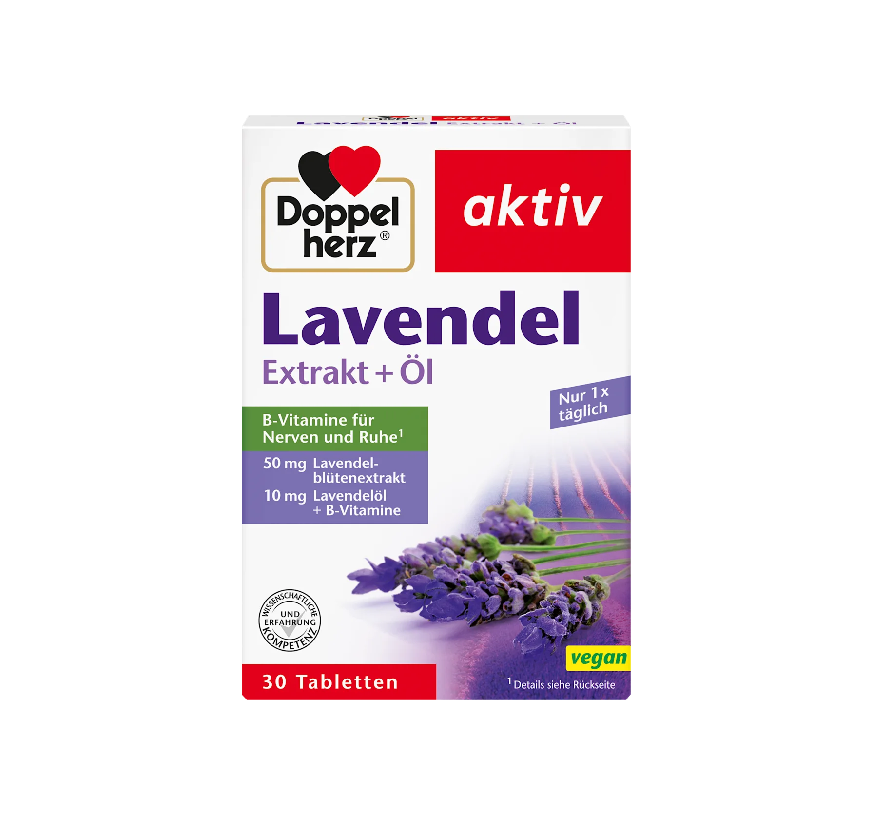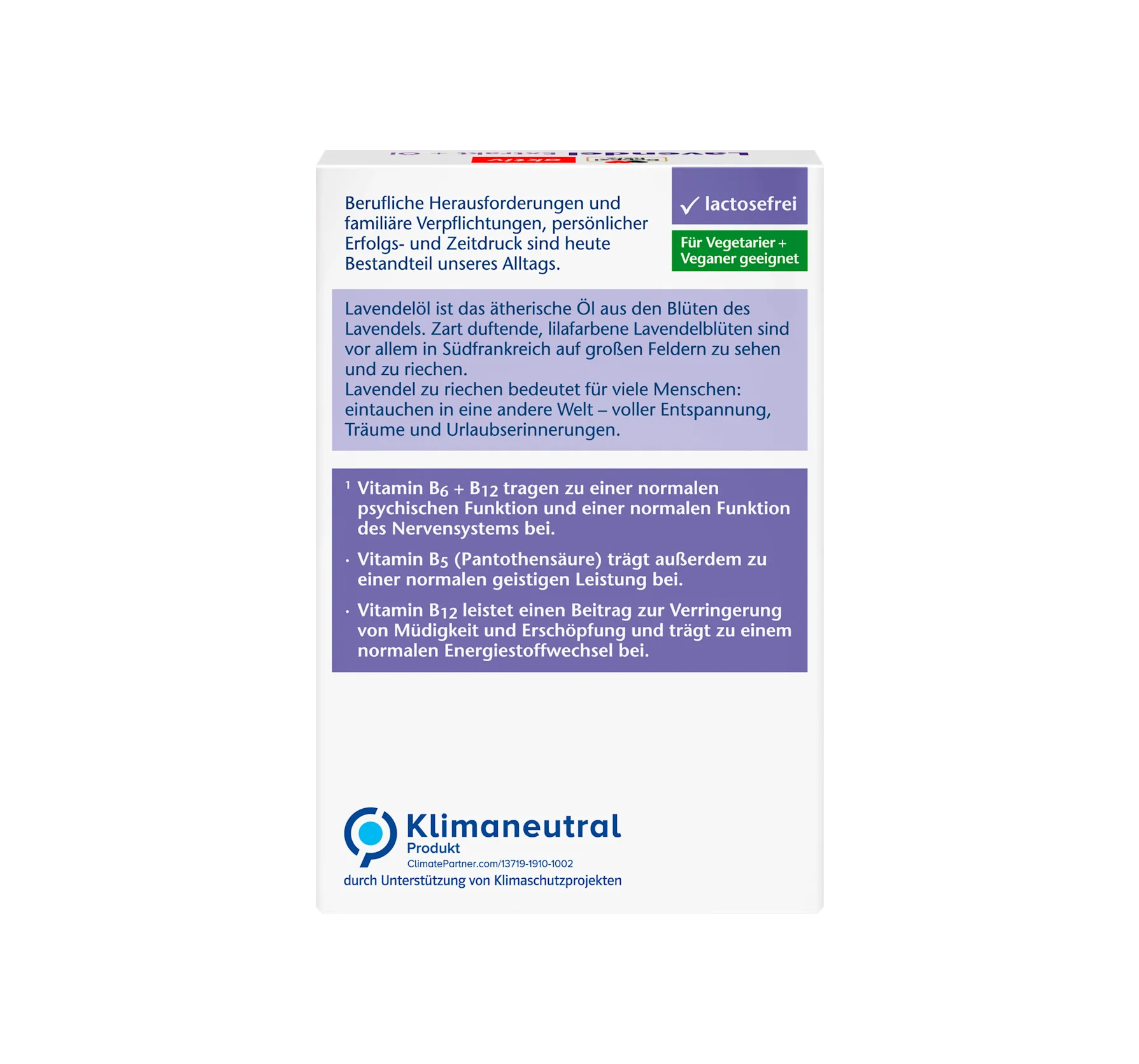 Doppelherz Lavender Extract + Oil Tablets support a good supply of selected B vitamins. They also contain 50 mg of lavender flower extract combined with 10 mg of lavender oil. B vitamins have di...