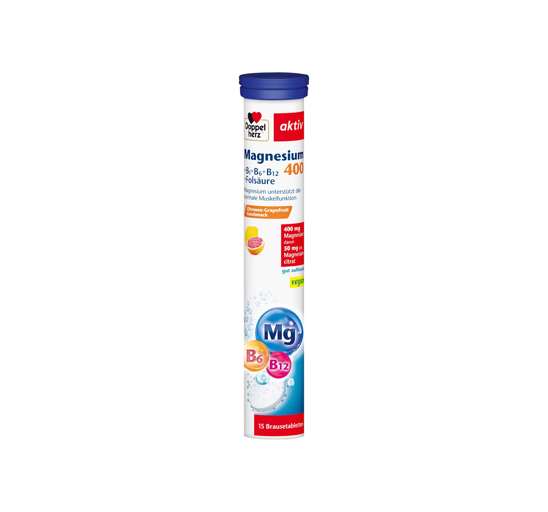 Product Description: Dietary supplement with magnesium, folic acid, and B vitamins. Tastes like grapefruit and lemon. Take only once daily. The Magnesium 400 + B1 + B6 + B12 + Folic Acid efferve...