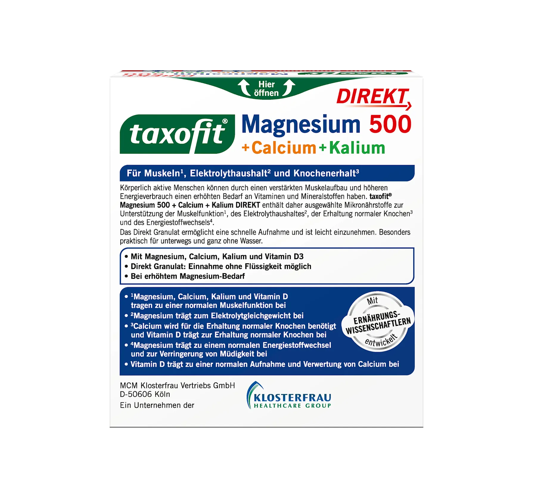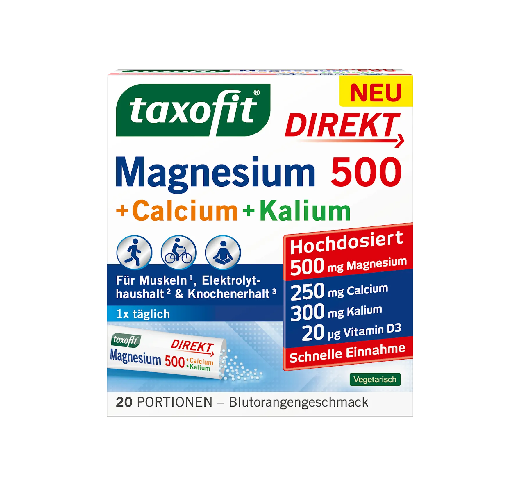 Taxofit's Magnesium Calcium Potassium Direct Granules are ideal for counteracting increased magnesium needs. Thanks to the practical portion sticks, this vegetarian dietary supplement can be tak...