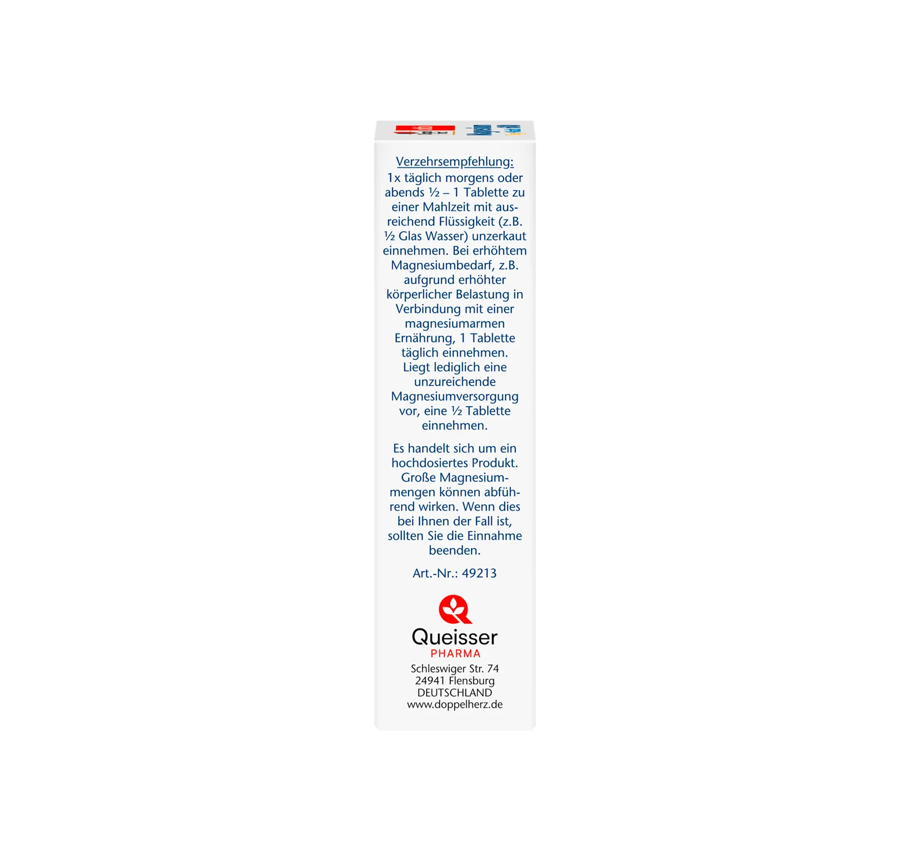 Take 1/2 - 1 tablet once daily in the morning or evening with a meal and sufficient liquid (e.g., 1/2 glass of water), without chewing. If your magnesium needs are increased, e.g., due to increased physical exertion combined with a magnesium-deficient diet, take 1 tablet daily. If your magnesium intake is simply insufficient, take 1/2 tablet.