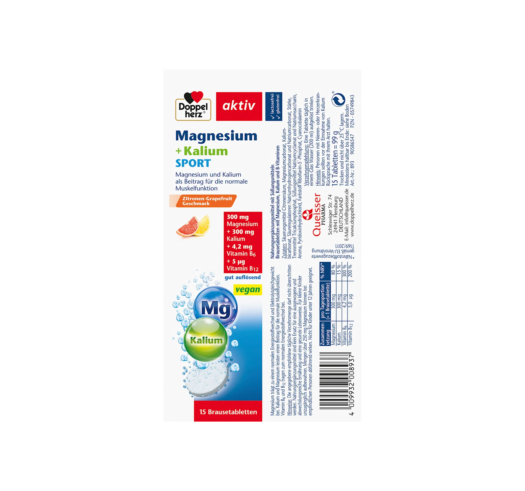 Doppelherz Magnesium Potassium Sport are easily dissolving effervescent tablets with a delicious lemon-grapefruit fla...