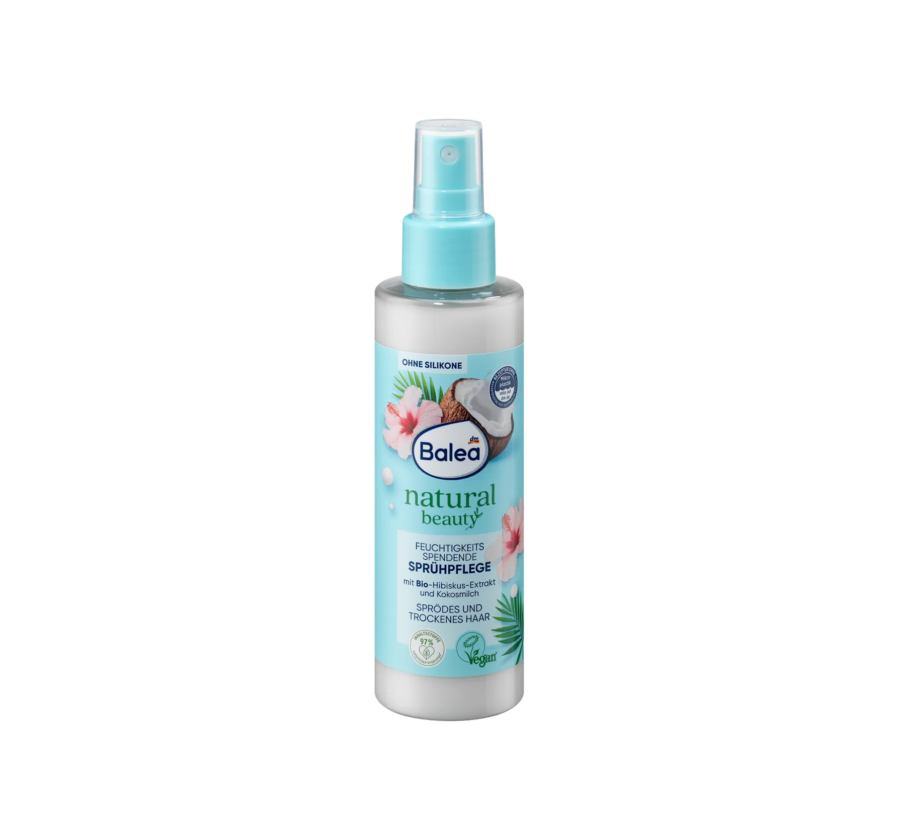 Valuable, gentle, and nourishing: Balea Natural Beauty Moisturizing Spray with organic hibiscus extract and coconut milk provides moisture and increases suppleness and shine – right down to the ...