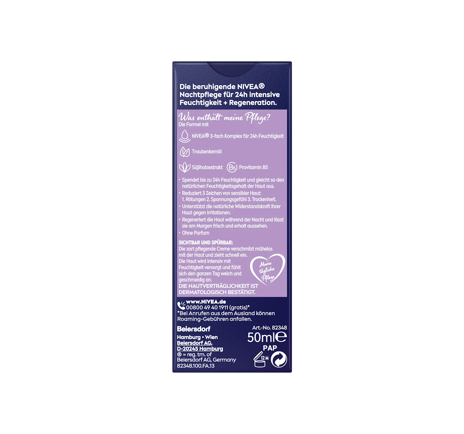 Apply the nourishing cream in the evening to a cleansed face, neck, and décolleté, avoiding the eye area. Gently massage it evenly over the skin. To optimally complement your skincare routine, cleanse your skin with a NIVEA cleanser before applying the cream and tonify it with a NIVEA facial toner.