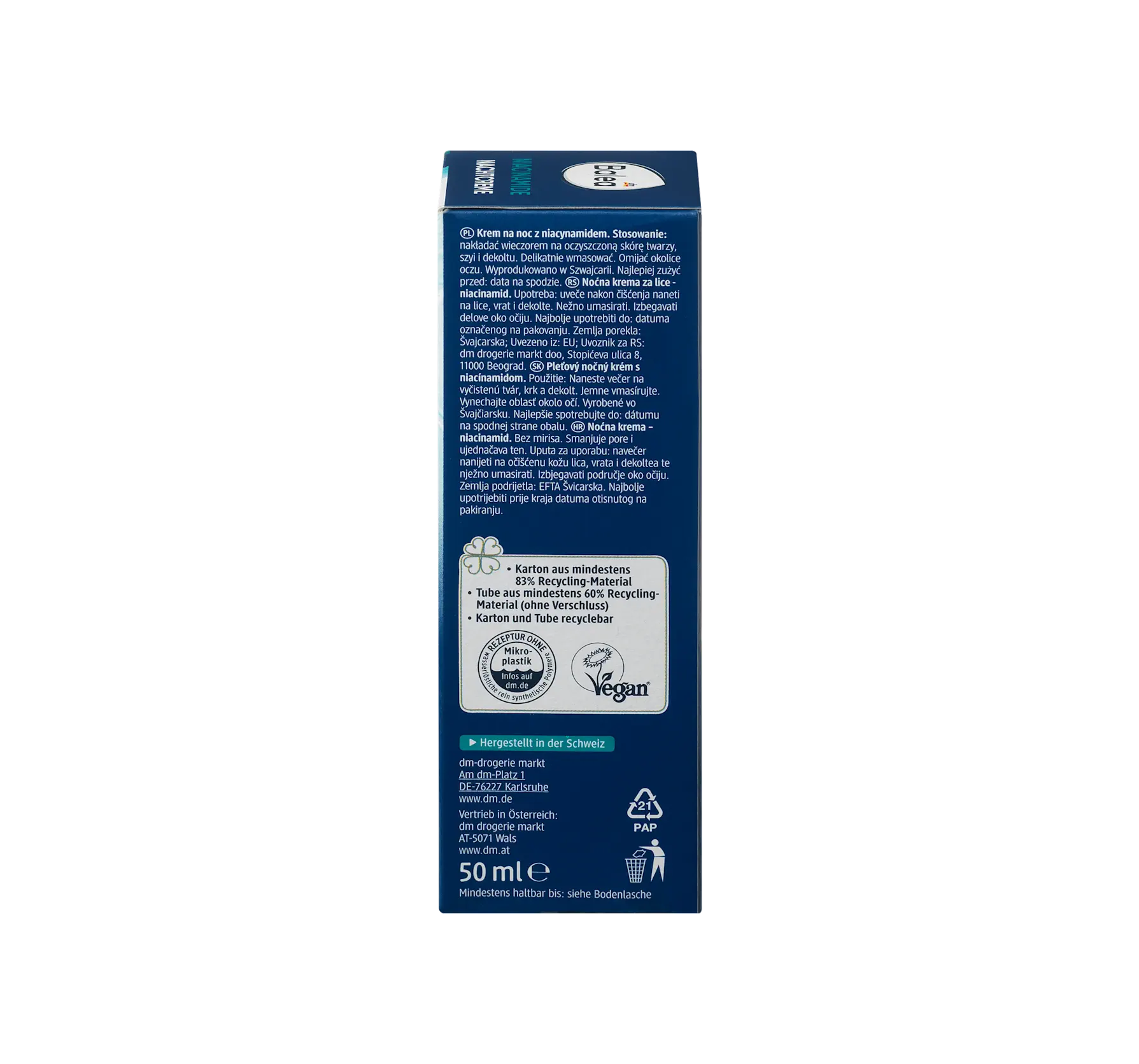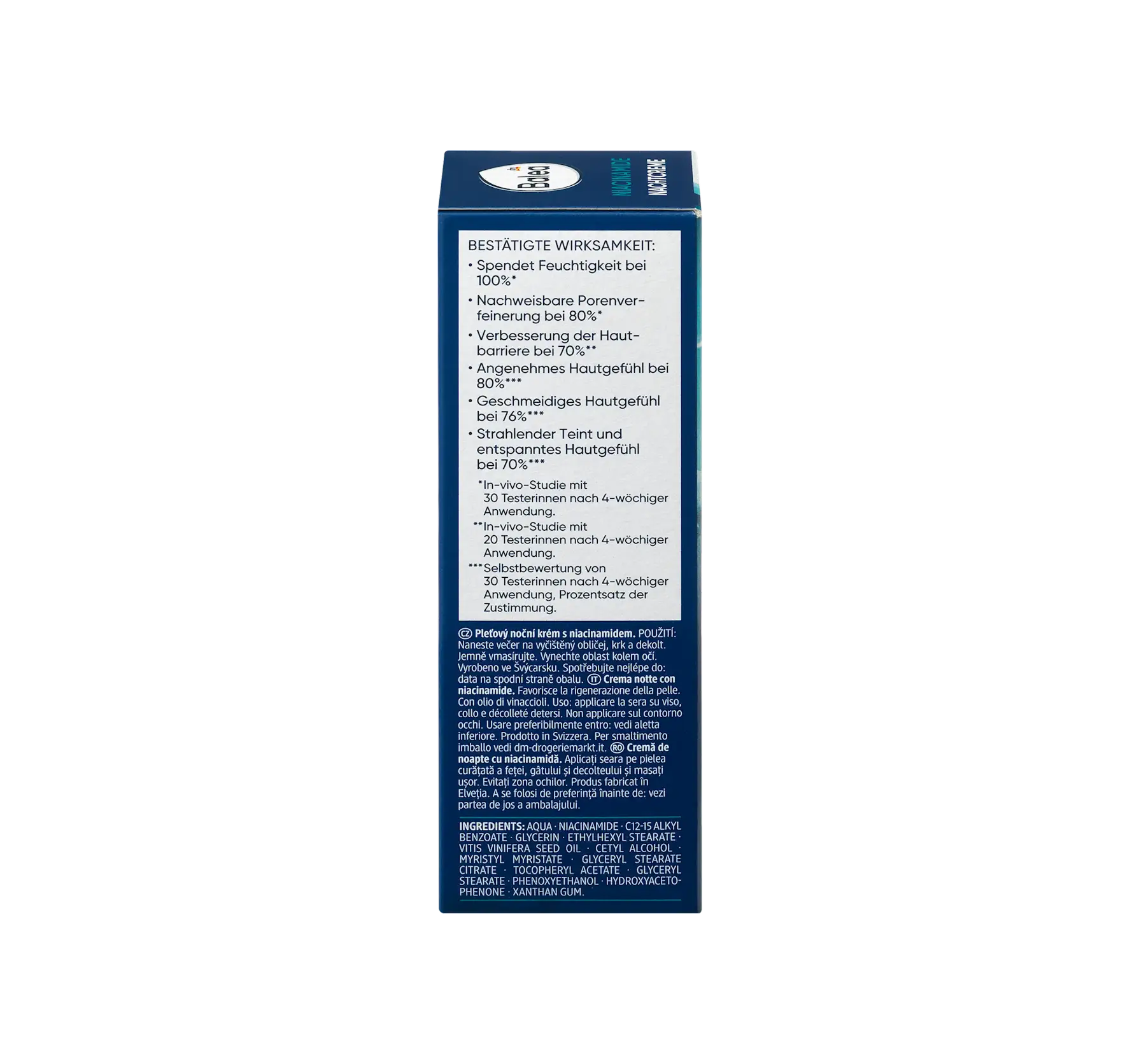 Balea's Niacinamide Night Cream, with its 10% niacinamide formula, supports the skin's nightly regeneration process and helps refine its appearance. The formula with 5% grape seed oil supports m...
