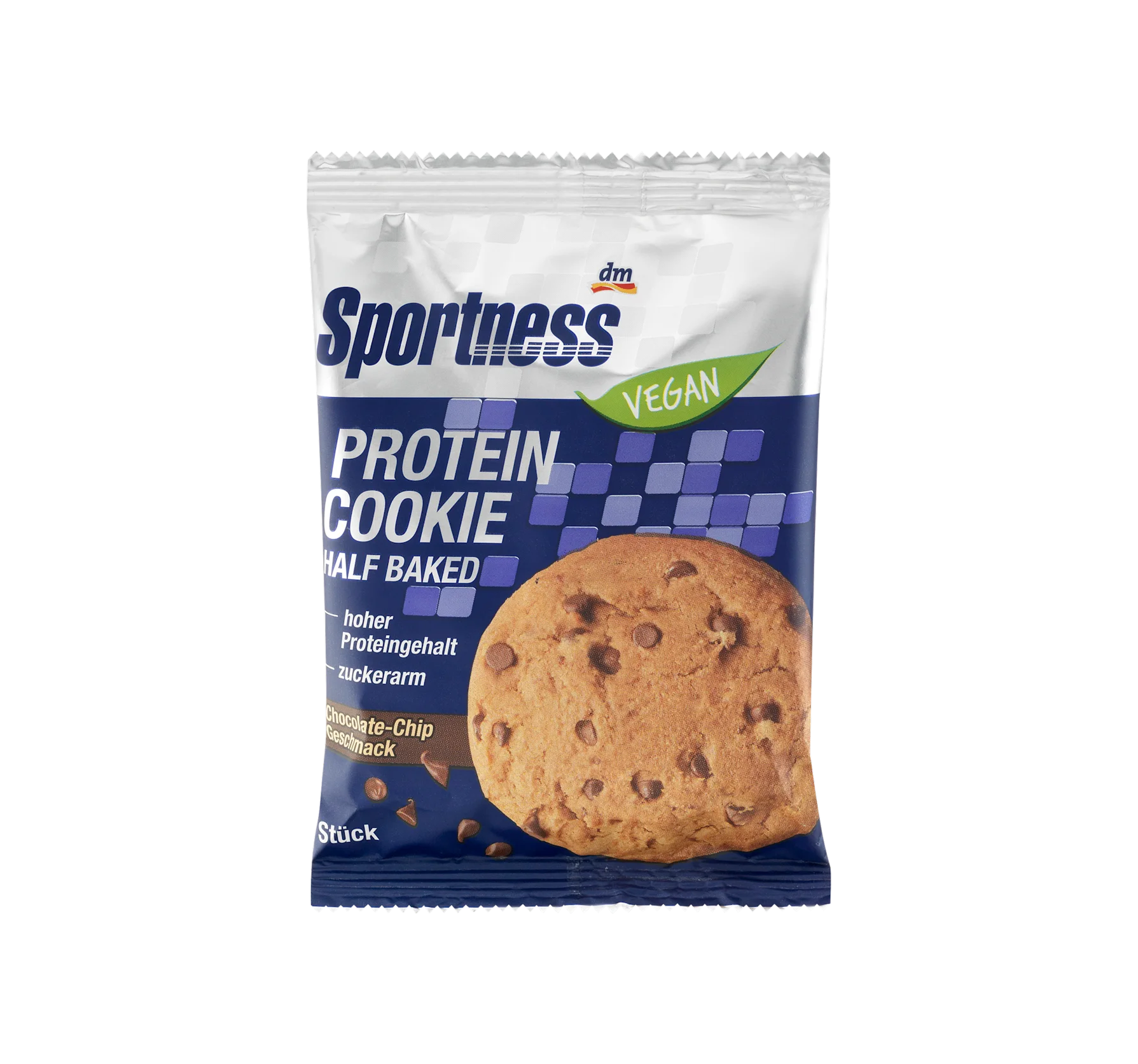 High in protein, low in sugar. The Sportness Protein Cookie half-baked with a delicious chocolate chip flavor is an ideal snack for between meals because it's vegan, low in sugar, and rich in pr...