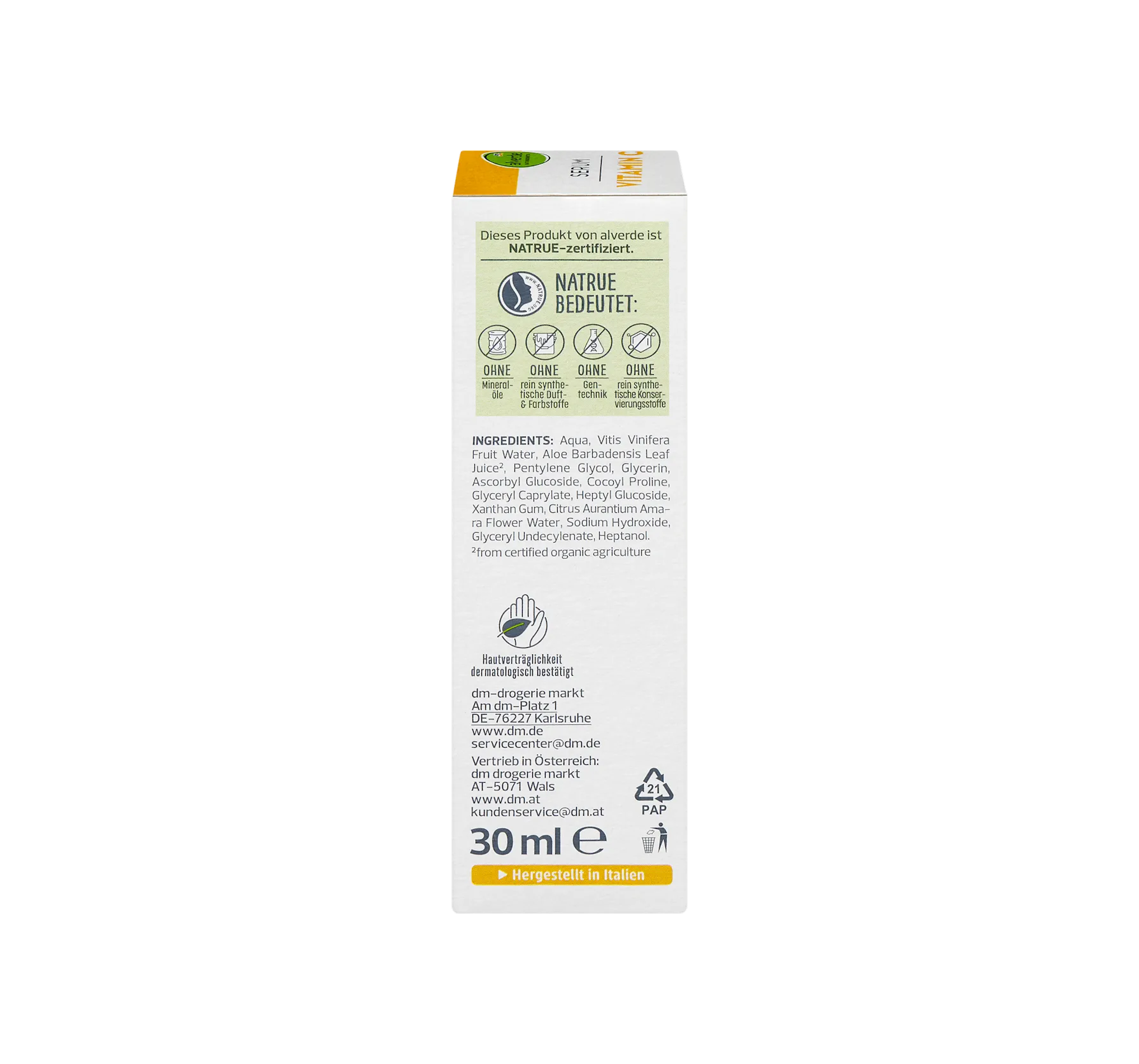 The Vitamin C Serum from alverde NATURKOSMETIK contains powerful vitamin C, organic aloe vera, bitter orange extract, and grape water, providing your daily dose of natural glow. Thanks to the an...