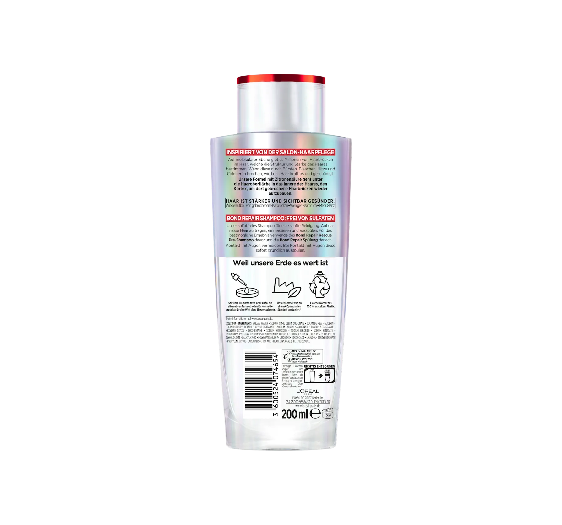 For strengthened hair with more shine, use L'Oréal Paris Elvital Bond Repair Shampoo: For optimal results, apply to wet hair, massage in, and rinse. Avoid contact with eyes and rinse thoroughly if contact occurs. Follow with Bond Repair Rescue Pre-Shampoo and Bond Repair Conditioner.