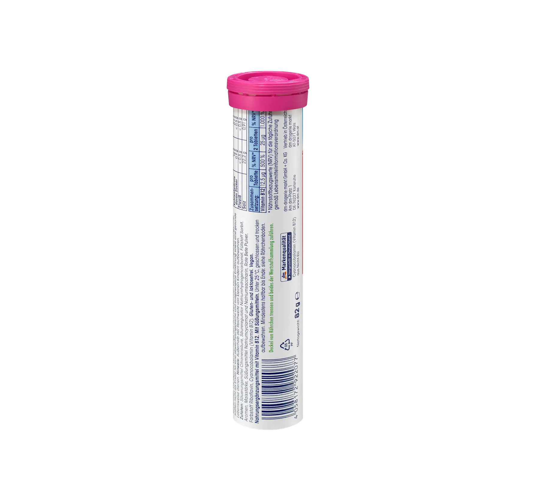 Dissolve one effervescent tablet daily in a 200ml glass of water – refreshing and tasty. If you have an increased vitamin B12 requirement, take two effervescent tablets throughout the day. Do not exceed the daily intake. Food supplements should not be used as a substitute for a varied and balanced diet and a healthy lifestyle.