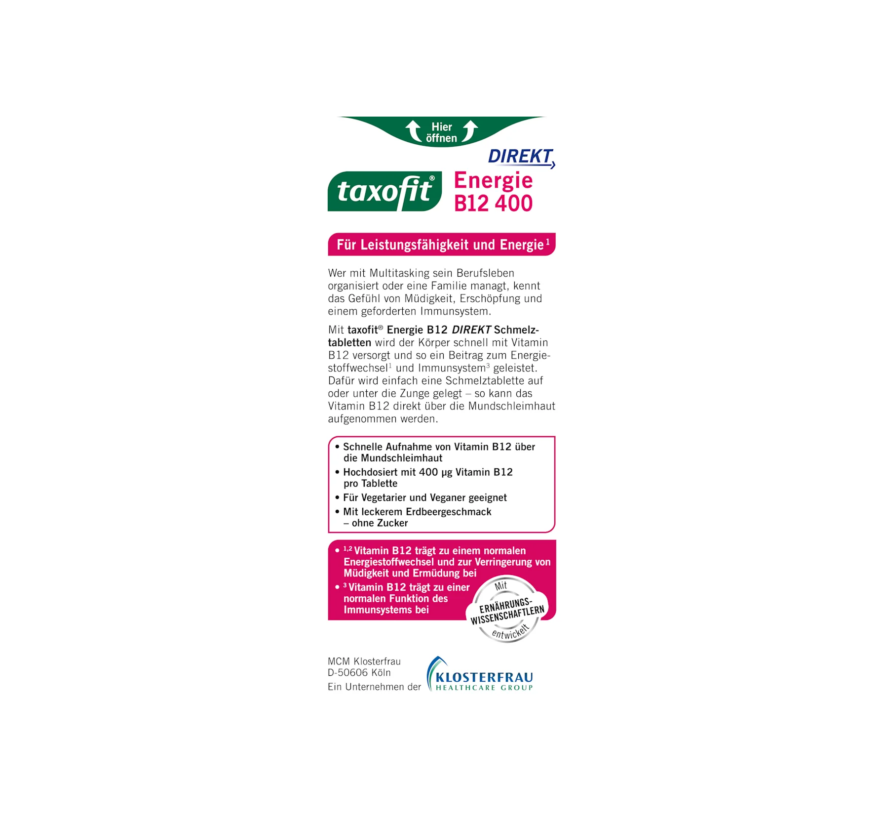 Anyone who multitasks while managing their professional life or a family knows the feeling of fatigue, exhaustion, and a strained immune system. With taxofit Energy B12 Direct Melt Tablets, the ...