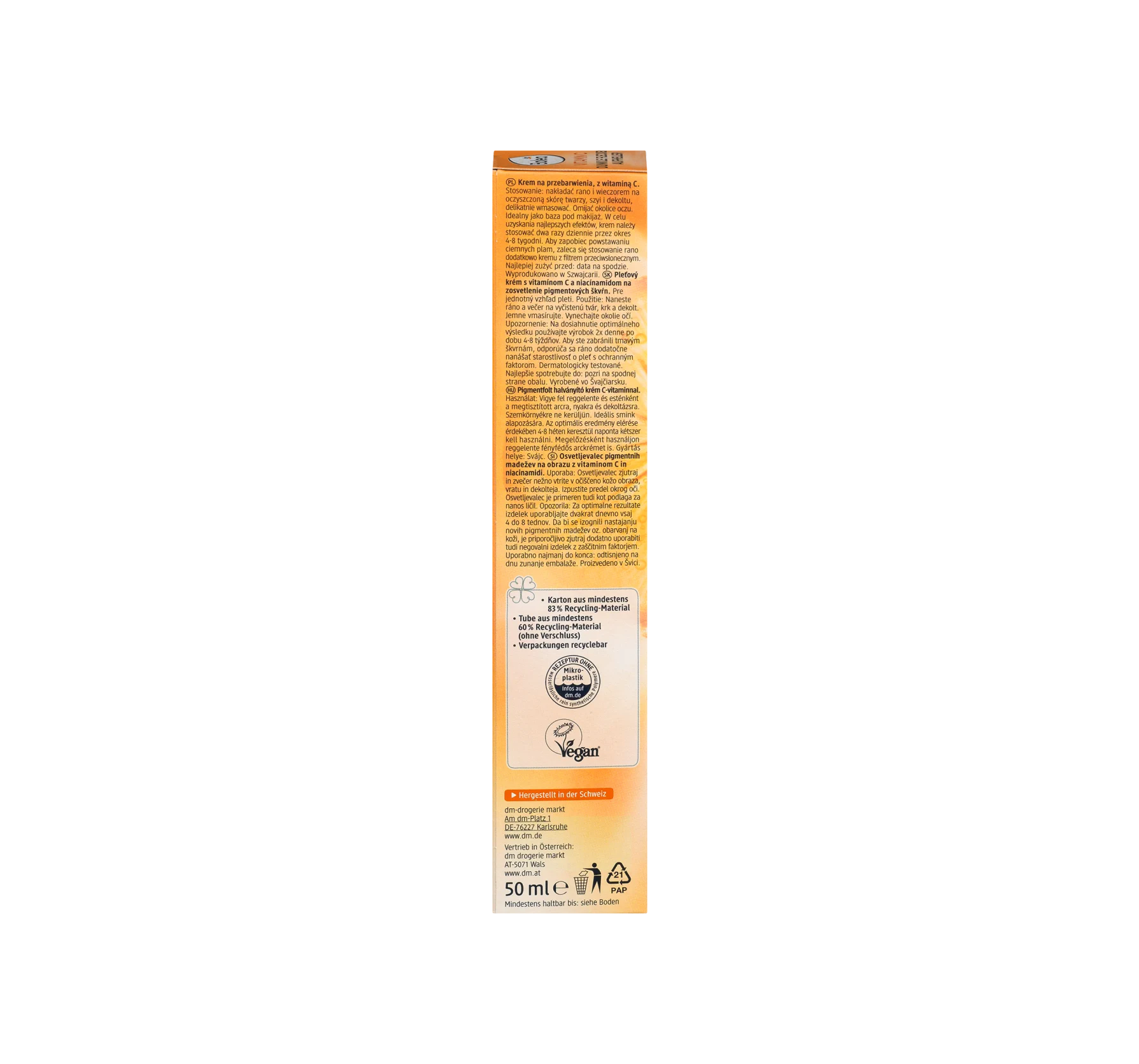 Balea Vitamin C Dark Spot Lightener ensures a more even complexion. The active ingredient combination of vitamin C and niacinamide has a brightening effect. Niacinamide red...