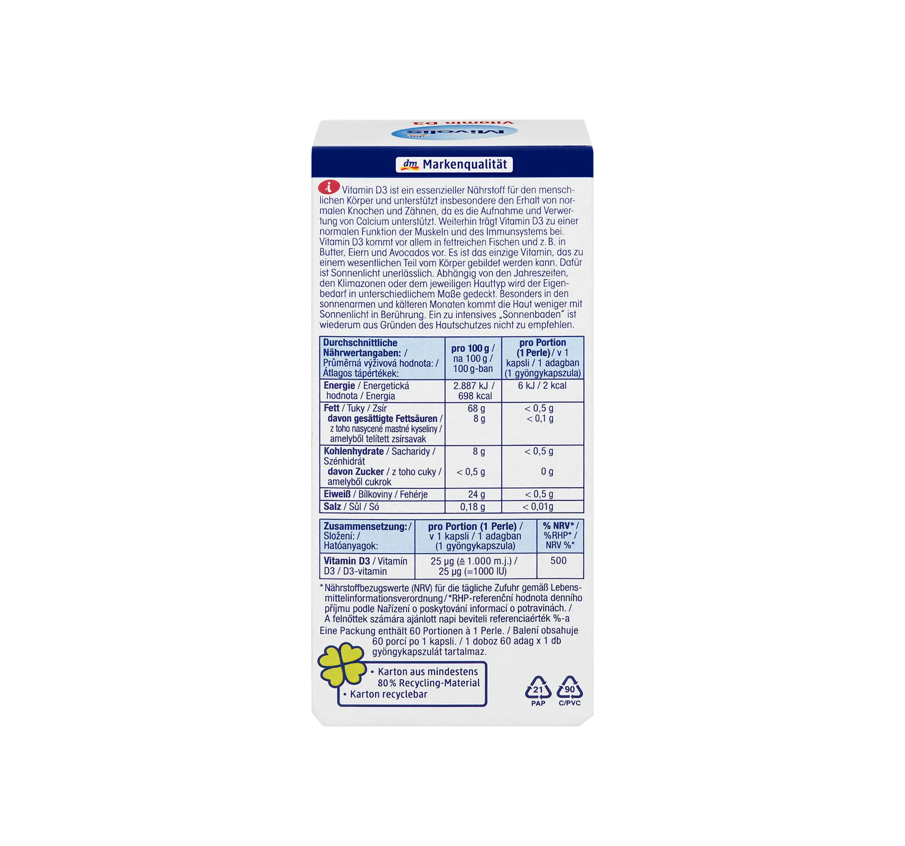 Vitamin D3 is an essential nutrient for the human body and, in particular, supports the maintenance of normal bones and teeth by aiding the absorption and utilization of calcium. Vitamin D3 also...