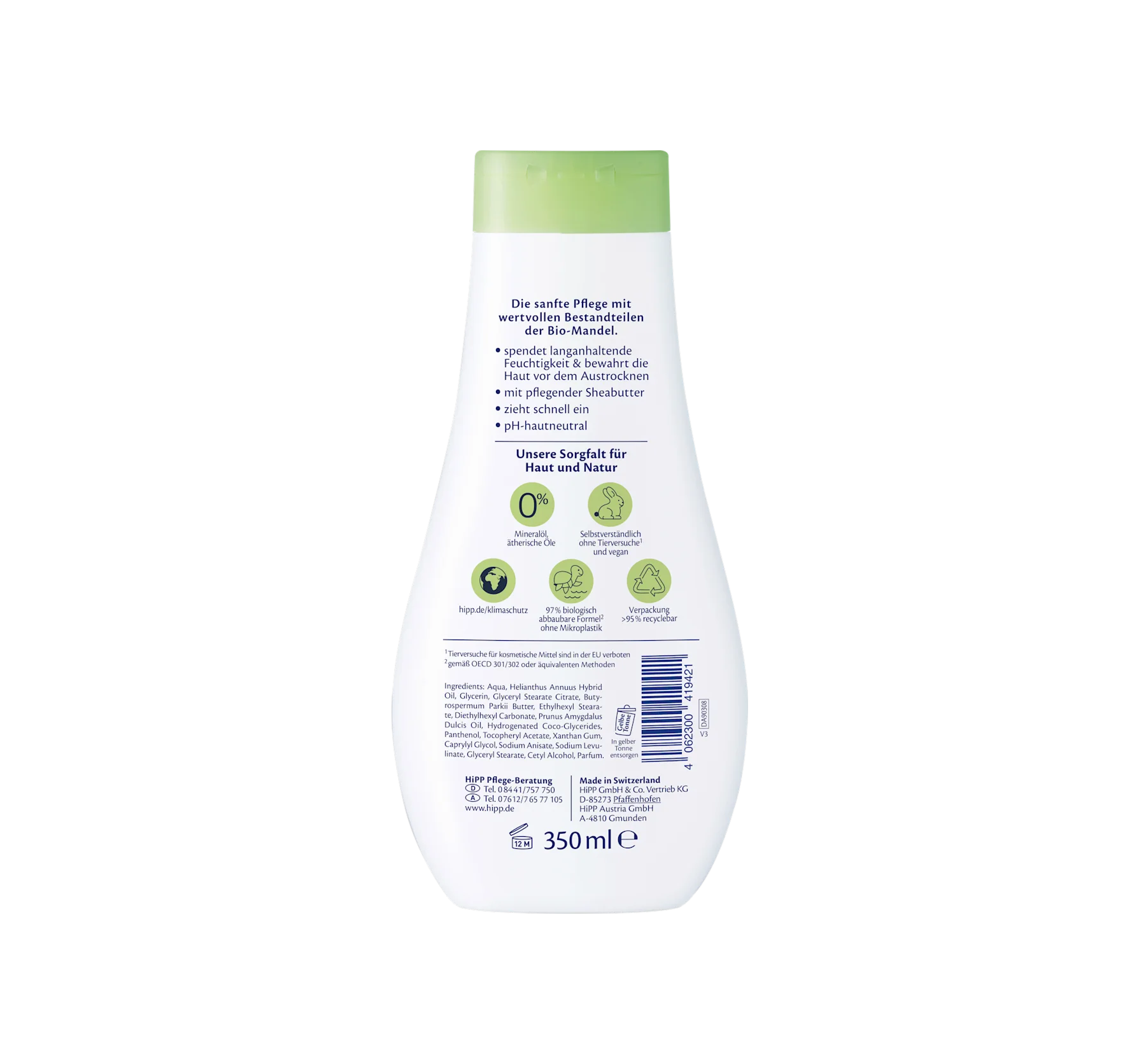 La suave loción corporal HiPP Babysanft con aceite de almendras orgánico proporciona una hidratación excepcional y se absorbe rápidamente. Esta loción protege la piel de la sequedad, está enriqu...