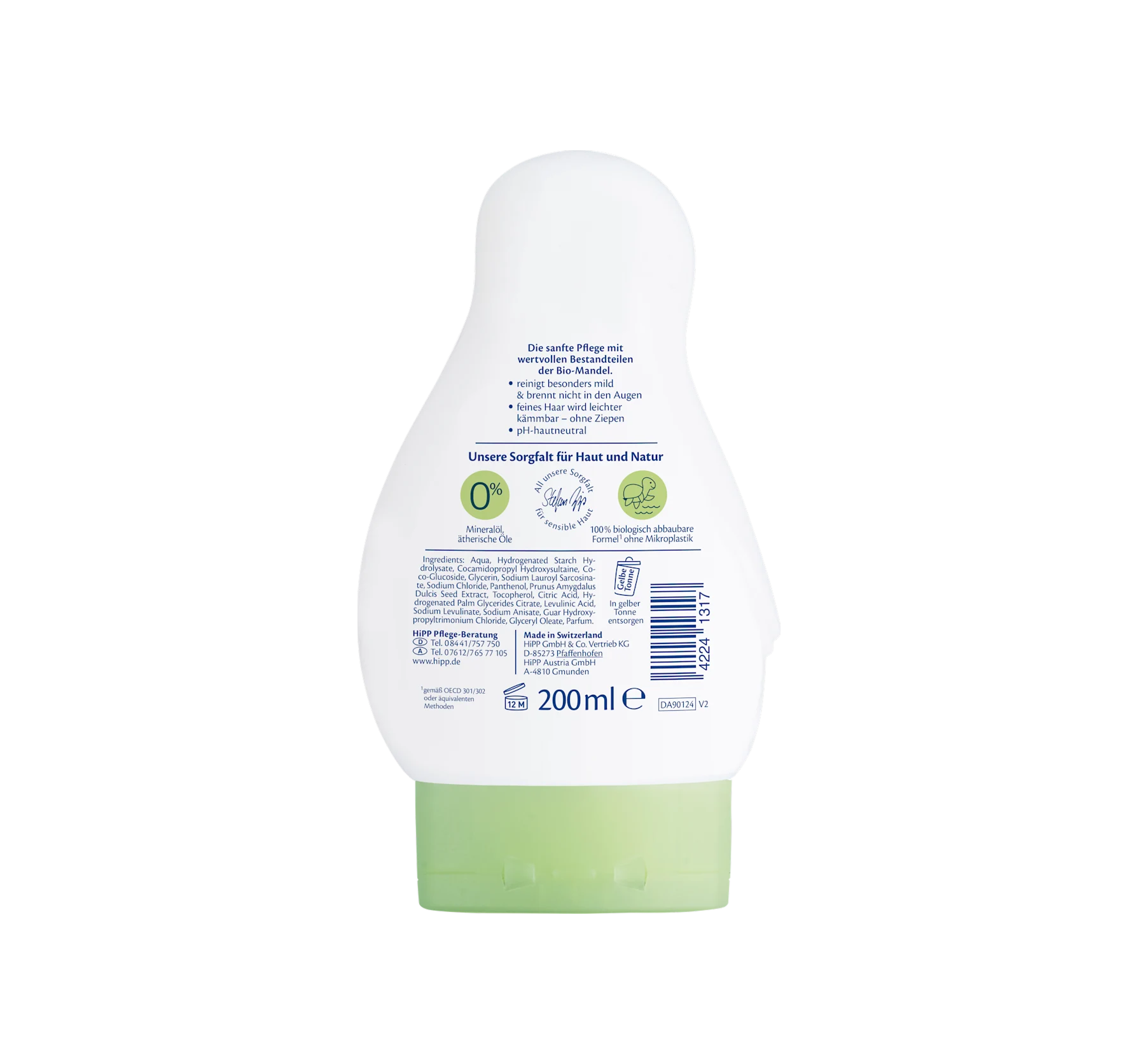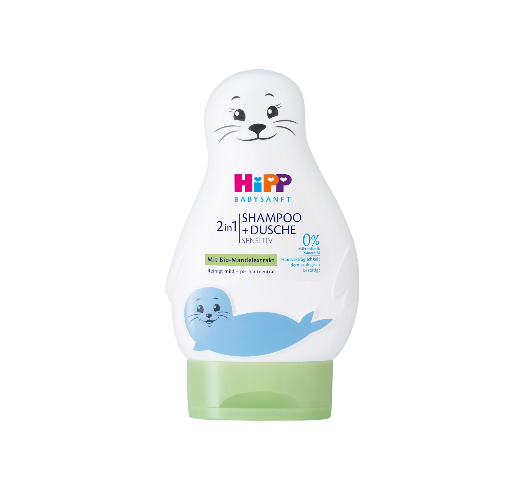 El gel de ducha suave 2 en 1 de HiPP Babysanft con champú para pieles sensibles limpia con suavidad la piel sensible y el cabello fino de los niños. Tiene pH neutro y no irrita. Además, facilita...