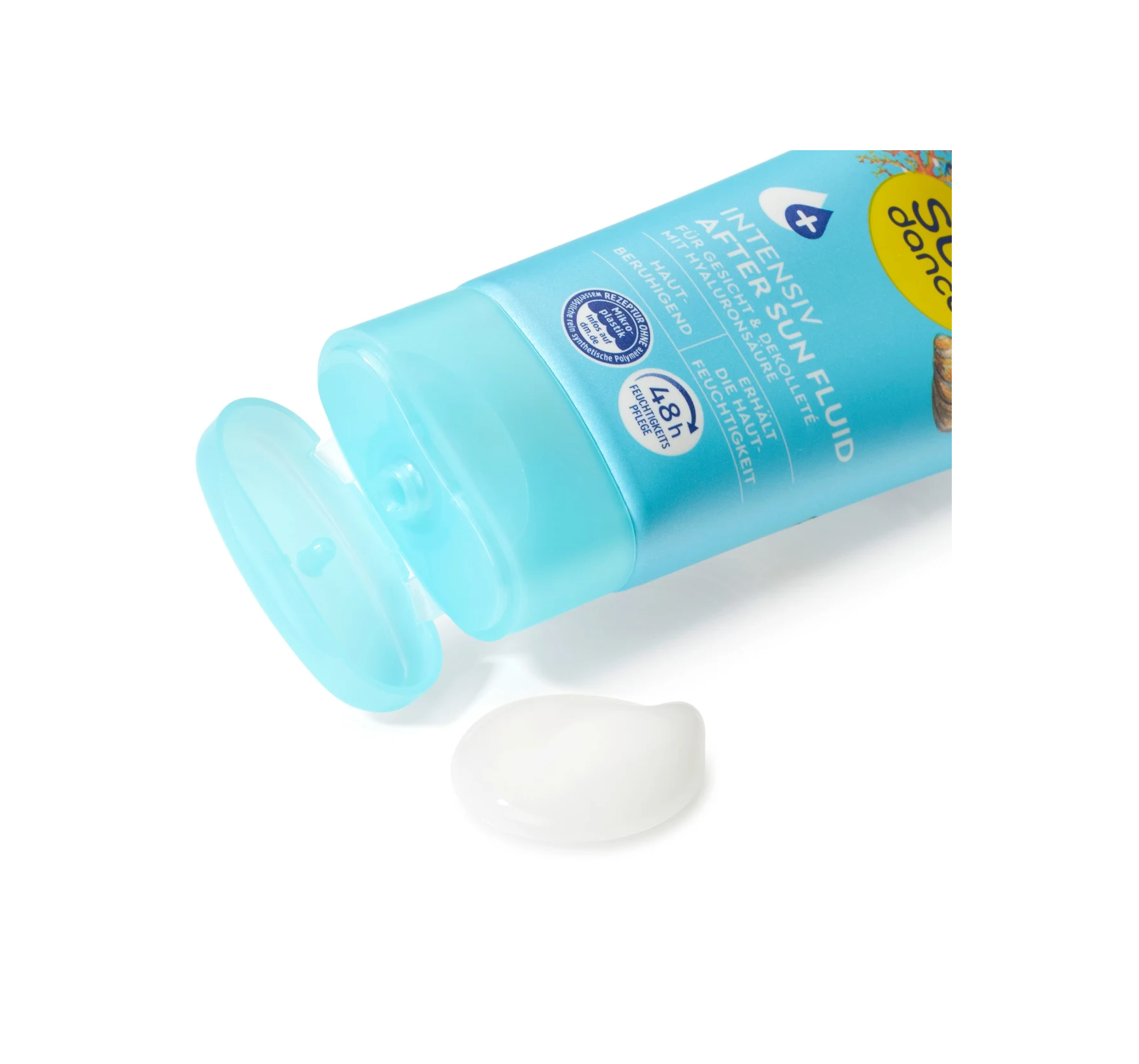 La formule soin intense du Fluide Après-Soleil Intensif SUNDANCE, à base de glycérine, d'aloe vera et d'acide hyaluronique, apaise les peaux sèches et stressées par le soleil. Des hydratants in...