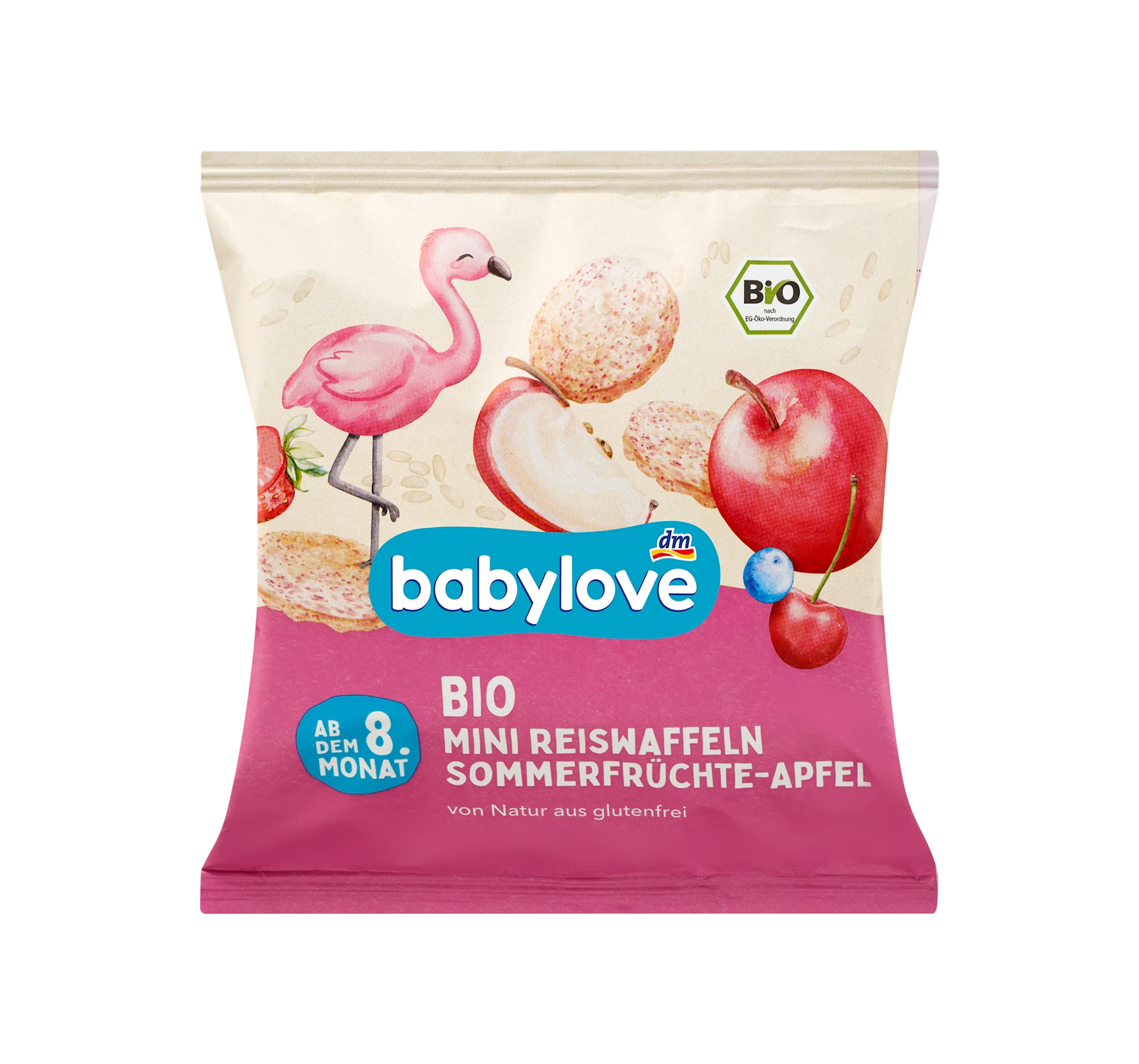 Galettes de riz croustillantes pour bébés de 8 mois et plus. Idéales à emporter et au goûter. Goût fruité de fruits d'été et de pomme. Les galettes de riz aux fruits d'été et à la pomme de Babylove sont le goûter idéal pour les bébés de 8 mois et plus. Ces gaufrettes croustillantes offrent une gourmandise fruitée et sont entièrement sans sel ni arômes. Parfaites à emporter, elles constituent une option pratique pour les petits explorateurs. Référence dm : 3059183. Code GTIN : 4067796082357.