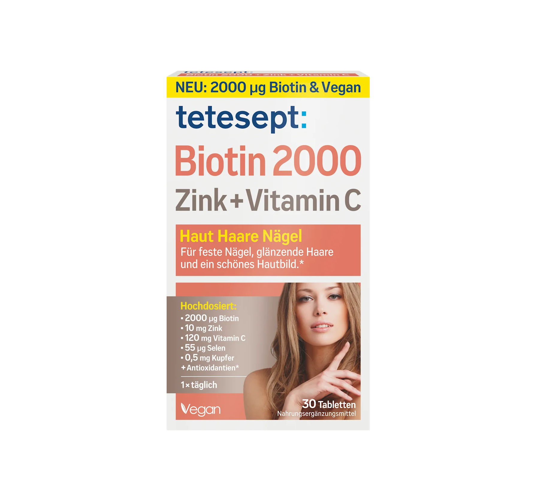 Les comprimés tetesept Biotine 2000 + Zinc + Vitamine C complètent parfaitement une alimentation équilibrée et prennent soin de votre apparence de l'intérieur. Cette formule spéciale contient de...