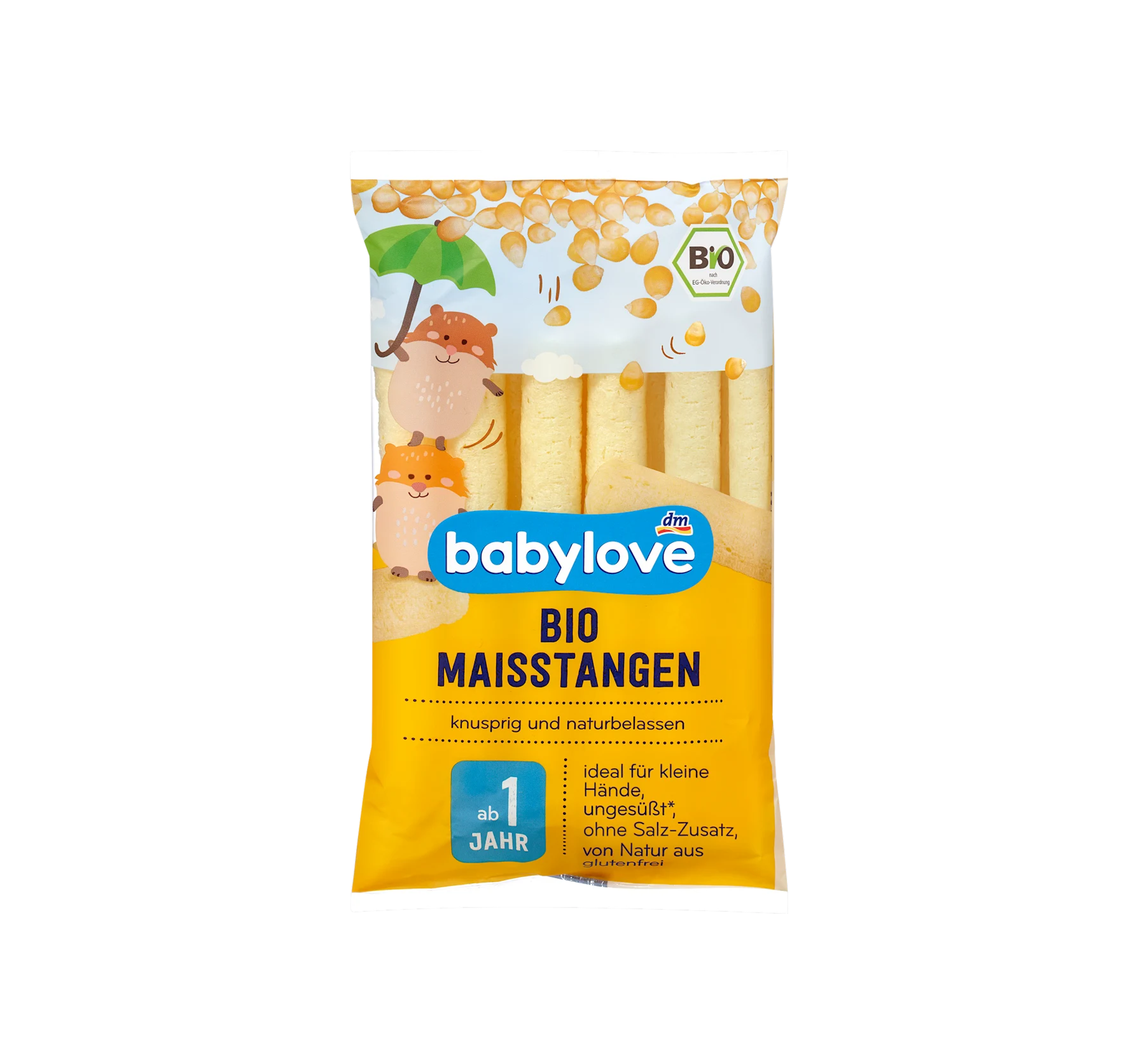 Bâtonnets de maïs croustillants pour bébés et tout-petits. Arôme naturel. Fabriqués à partir d'ingrédients biologiques. Format idéal pour les petites mains. Les bâtonnets de maïs Babylove sont u...