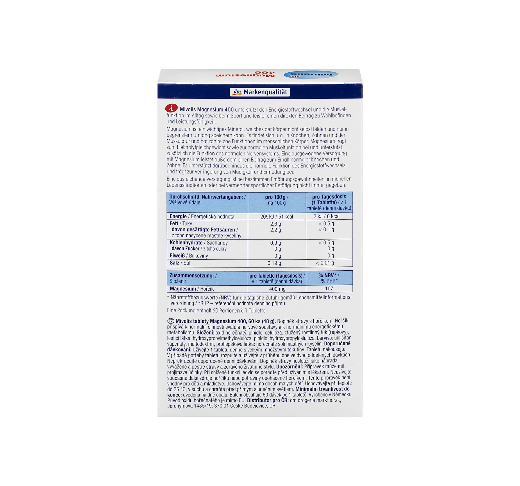 Mivolis Magnésium 400 soutient le métabolisme énergétique et la fonction musculaire au quotidien et pendant le sport, contribuant ainsi directement au bien-être et à la performance. Le magnésium...