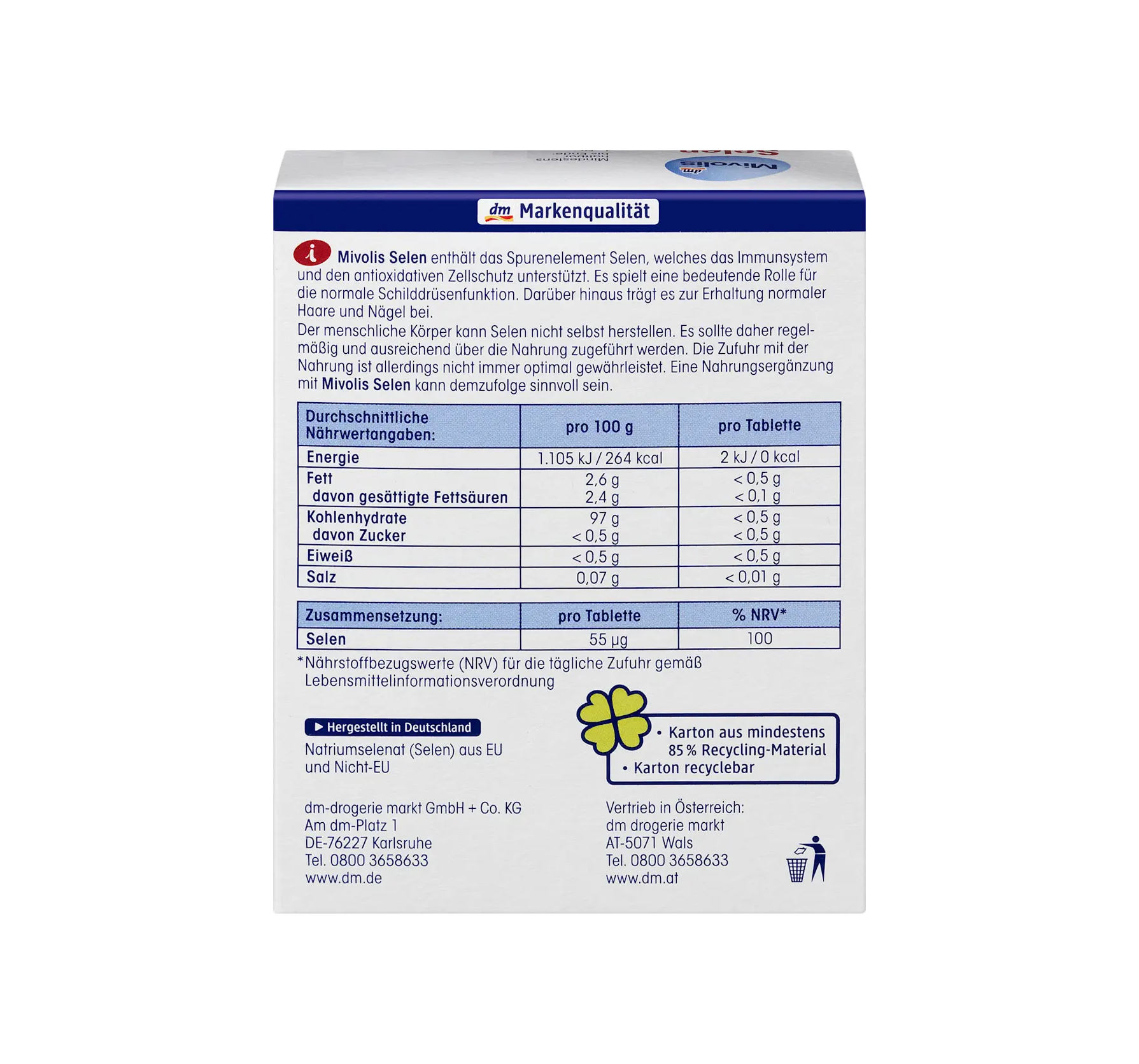Mivolis Selenium contient l'oligo-élément sélénium, qui soutient le système immunitaire et la protection cellulaire antiox...