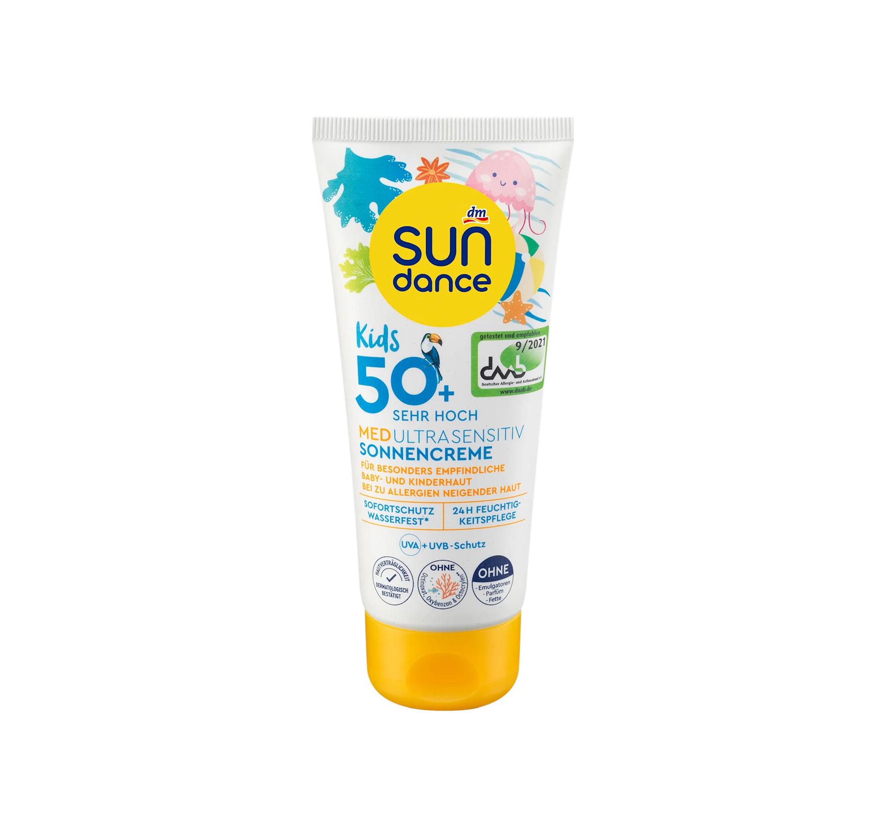 La crème solaire ultra-sensible Kids MED de SUNDANCE, avec un indice de protection solaire SPF 50+, convient aux peaux à tendance allergique. Testée et recommandée par l'Association allemande de...