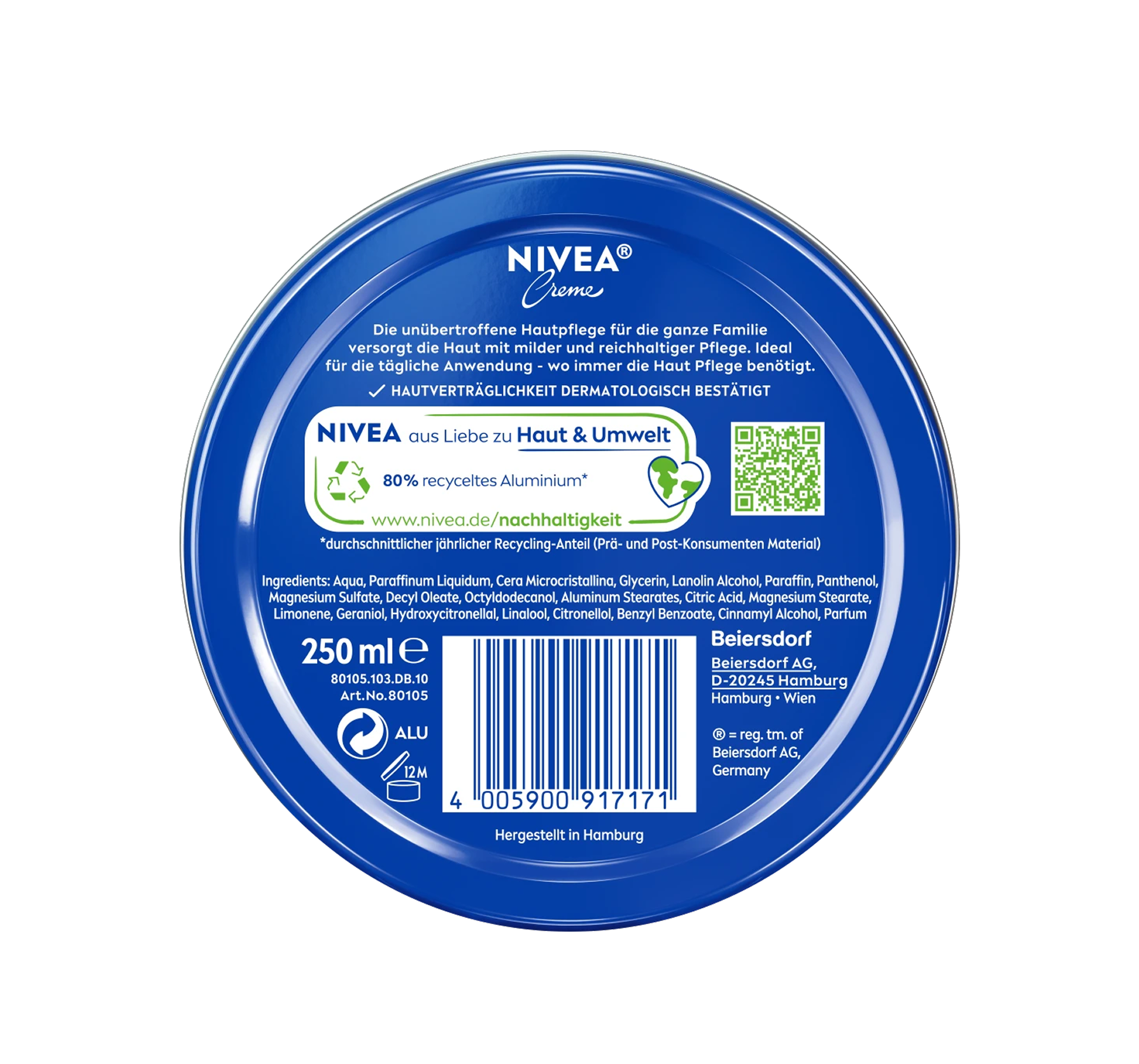 250毫升装的妮维雅润肤霜,配方丰润,适用于各种肤质,无论年龄大小,也无论场合。柔滑的质地搭配广受欢迎的香氛,以轻松的方式呵护和呵护肌肤,令肌肤柔嫩水嫩。适合日常使用,适用于需要温和滋养肌肤的肌肤。经皮肤科医生测试,肌肤兼容性良好。