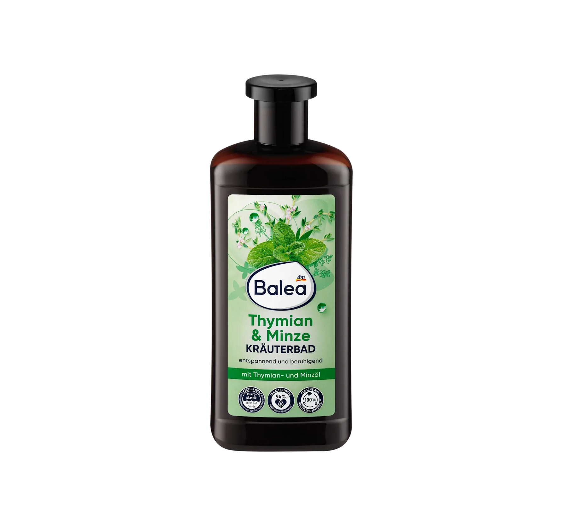 Balea 百里香薄荷草本沐浴露,舒缓身心,带来放松身心的休憩体验。这款温和的草本沐浴露蕴含百里香和薄荷精油,带来平衡的沐浴体验。其配方不含微塑料和水溶性纯合成聚合物。瓶身采用 100% 再生材料制成(不含瓶盖或铝箔)。