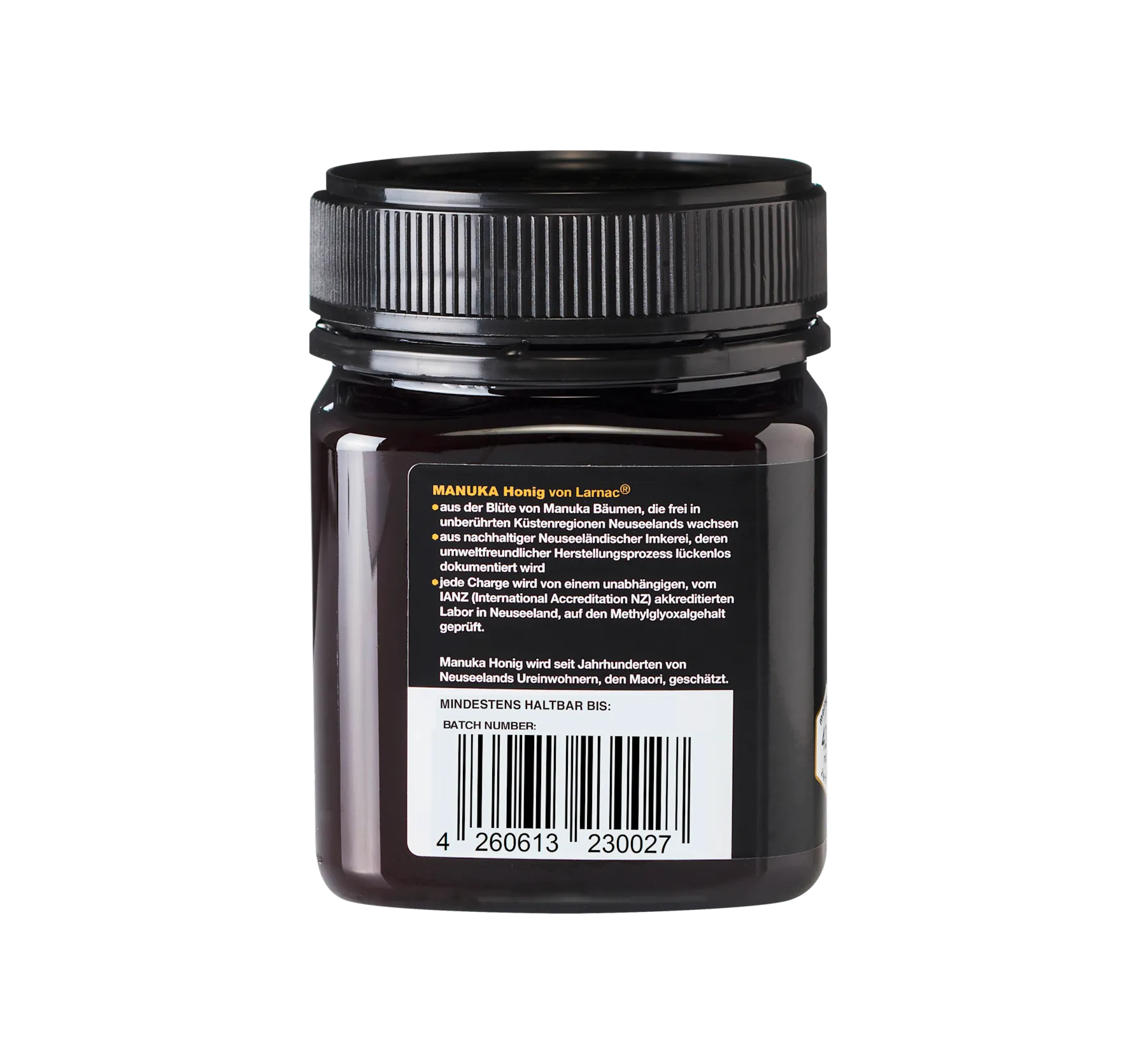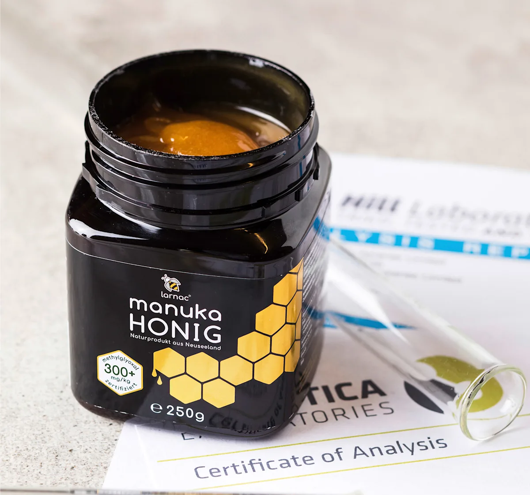 Larnac 麦卢卡蜂蜜体现了其产地新西兰原始的生态系统。在新西兰的春天,蜜蜂从麦卢卡花中采集花蜜,并用自身的酶进行发酵。随后,蜂巢中产出的麦卢卡蜂蜜以其高含量的甲基乙二醛而闻名。Larnac 麦卢卡蜂蜜保证纯正、纯净、高品质。