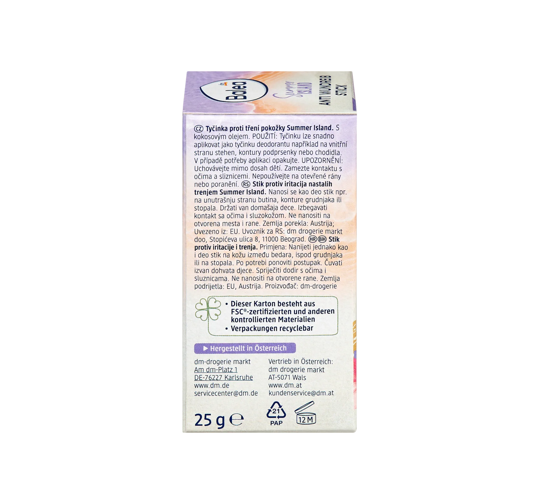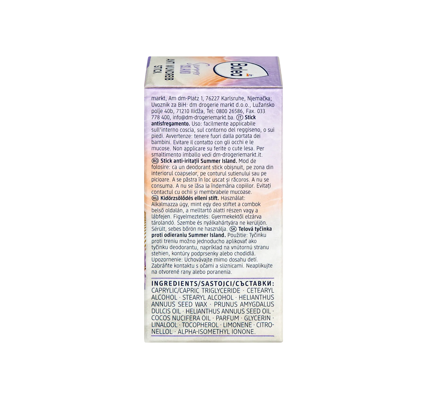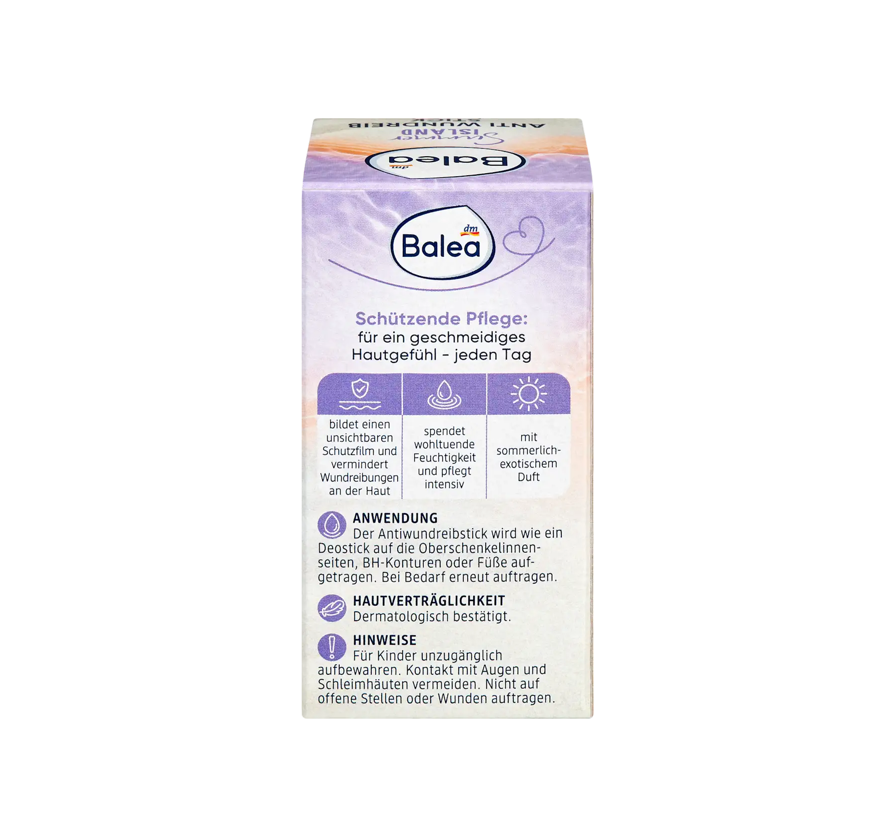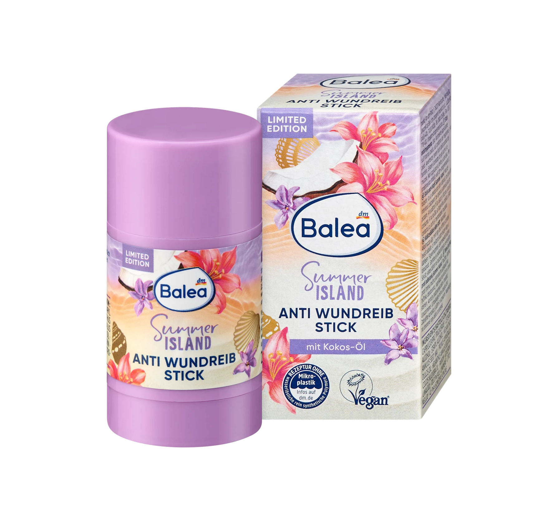 Balea 夏日島嶼防擦傷棒是炎炎夏日肌膚敏感時的完美選擇。它能形成一層隱形保護膜,有效減少肌膚摩擦,帶來舒適感受。這款棒狀產品非常適合敏感肌膚,易於塗抹,方便攜帶。對於想要在盡情享受夏日的同時保護肌膚免受刺激的人來說,它是一款必備的護理產品。