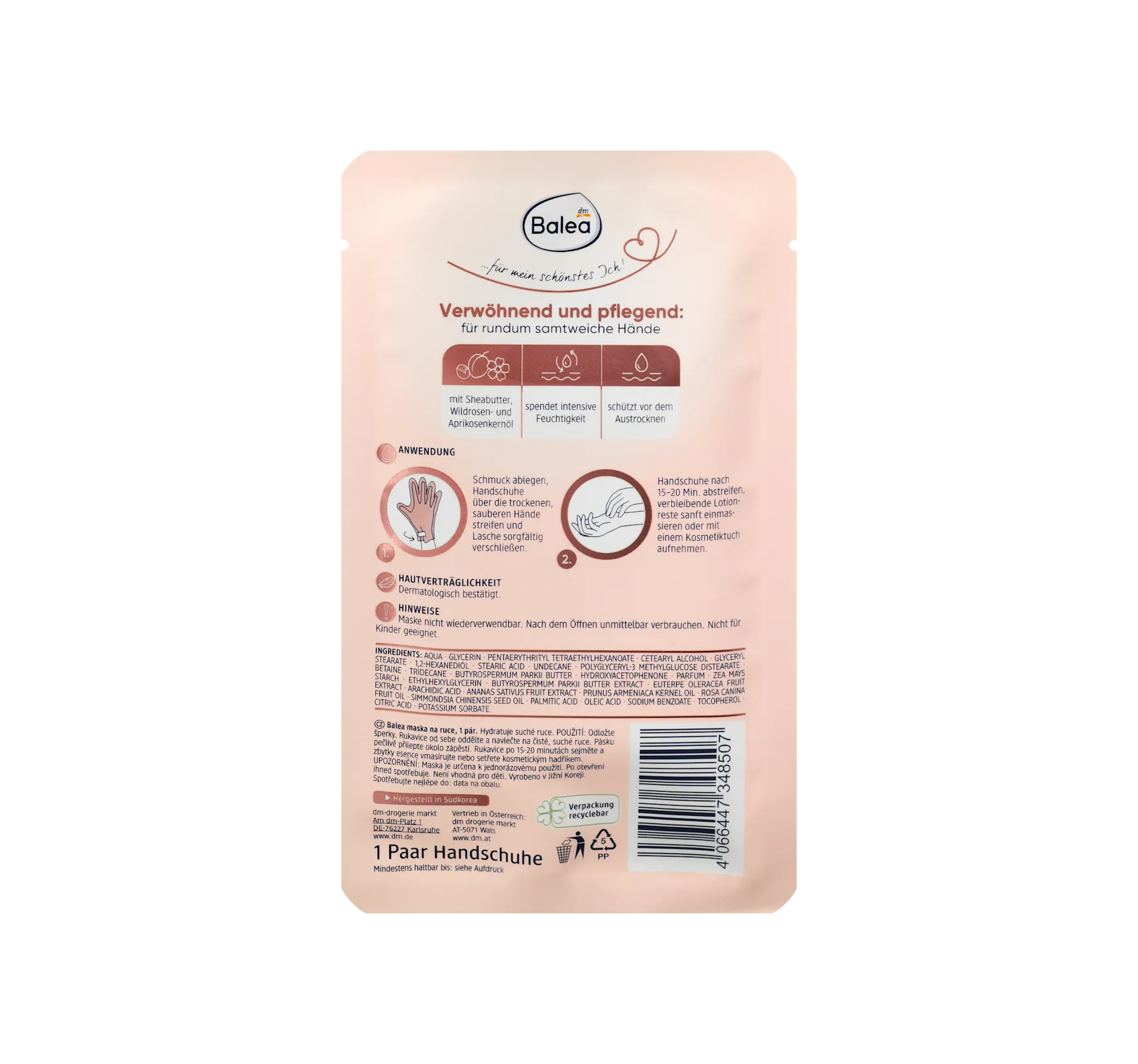 Balea 手套面膜蘊含乳木果油、野玫瑰和杏仁油,可提供密集的手部護理。這款面膜還能即時補水,防止肌膚乾燥。這款一次性手套也適用於觸控螢幕操作。