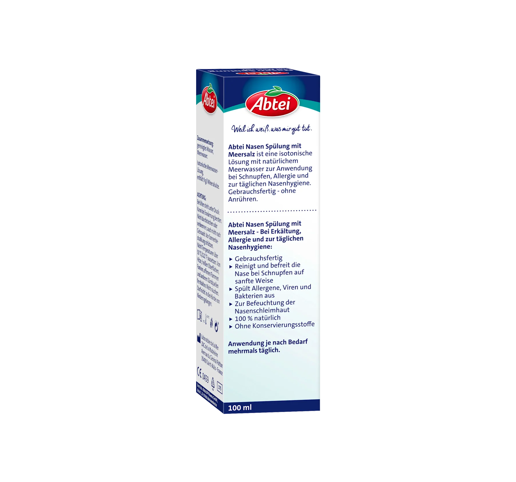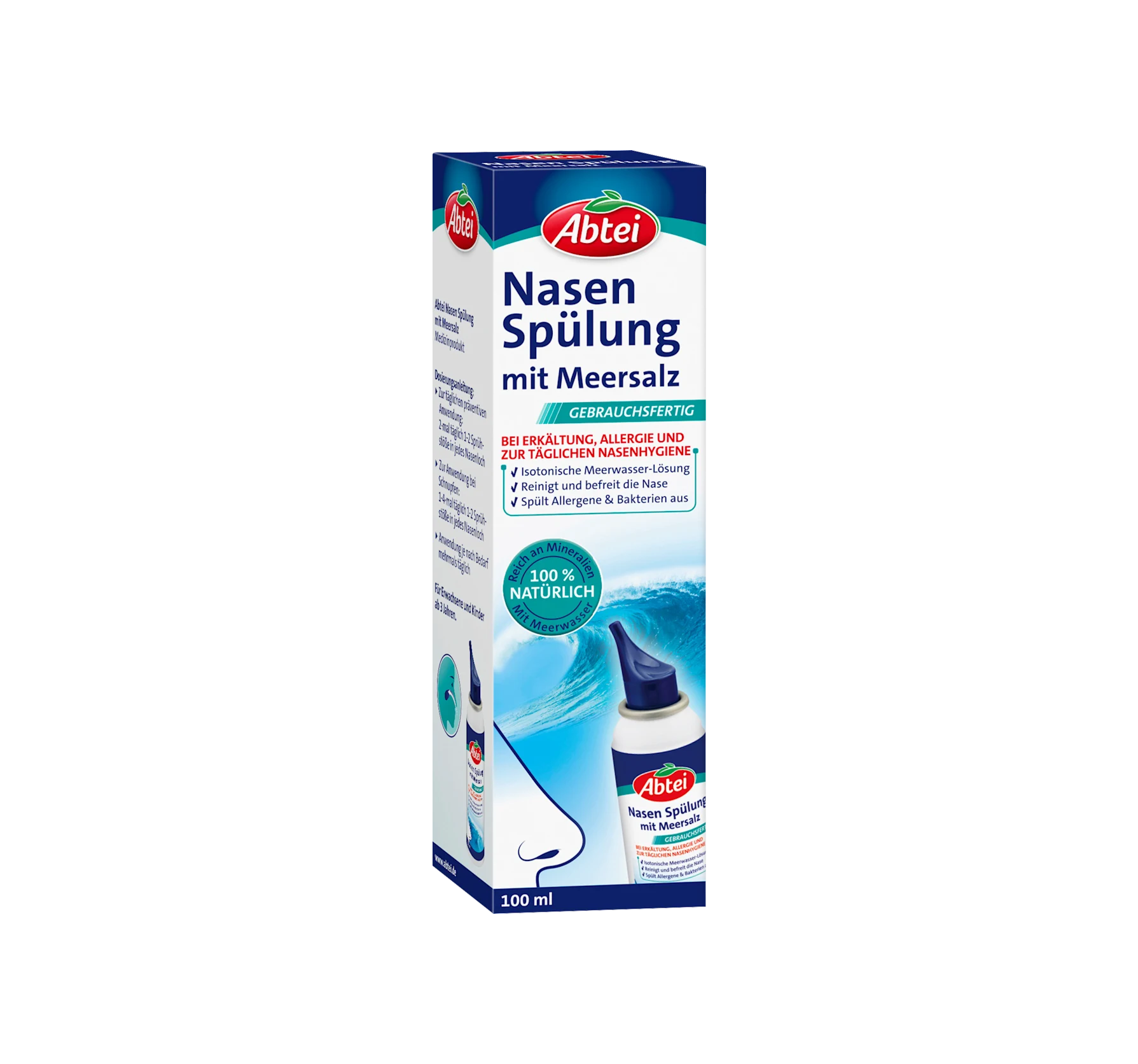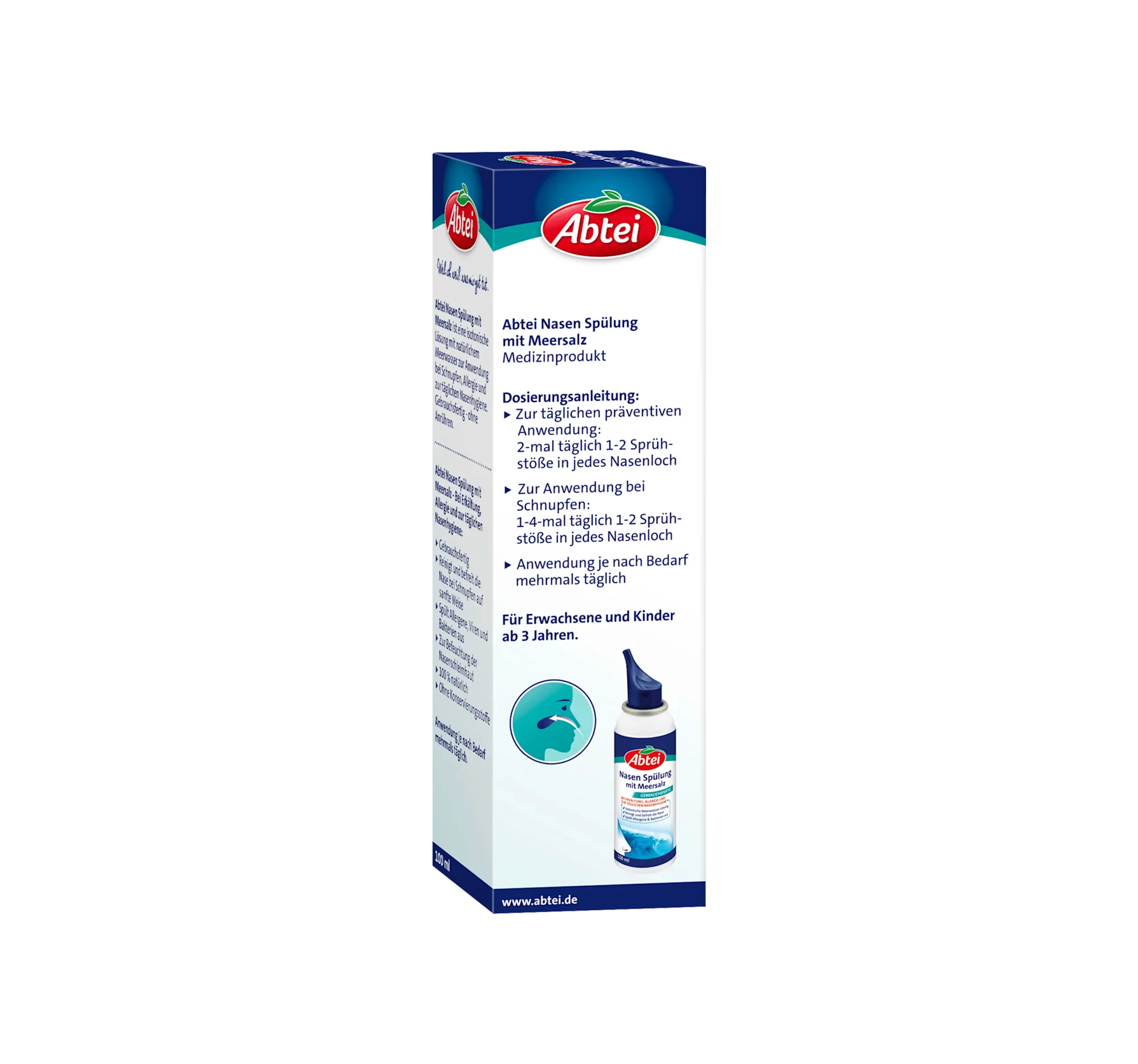 Abtei 海鹽鼻腔沖洗液是一種等滲透壓噴霧,蘊含天然海水,適用於感冒、過敏或日常鼻腔清潔。即用型,無需混合。
