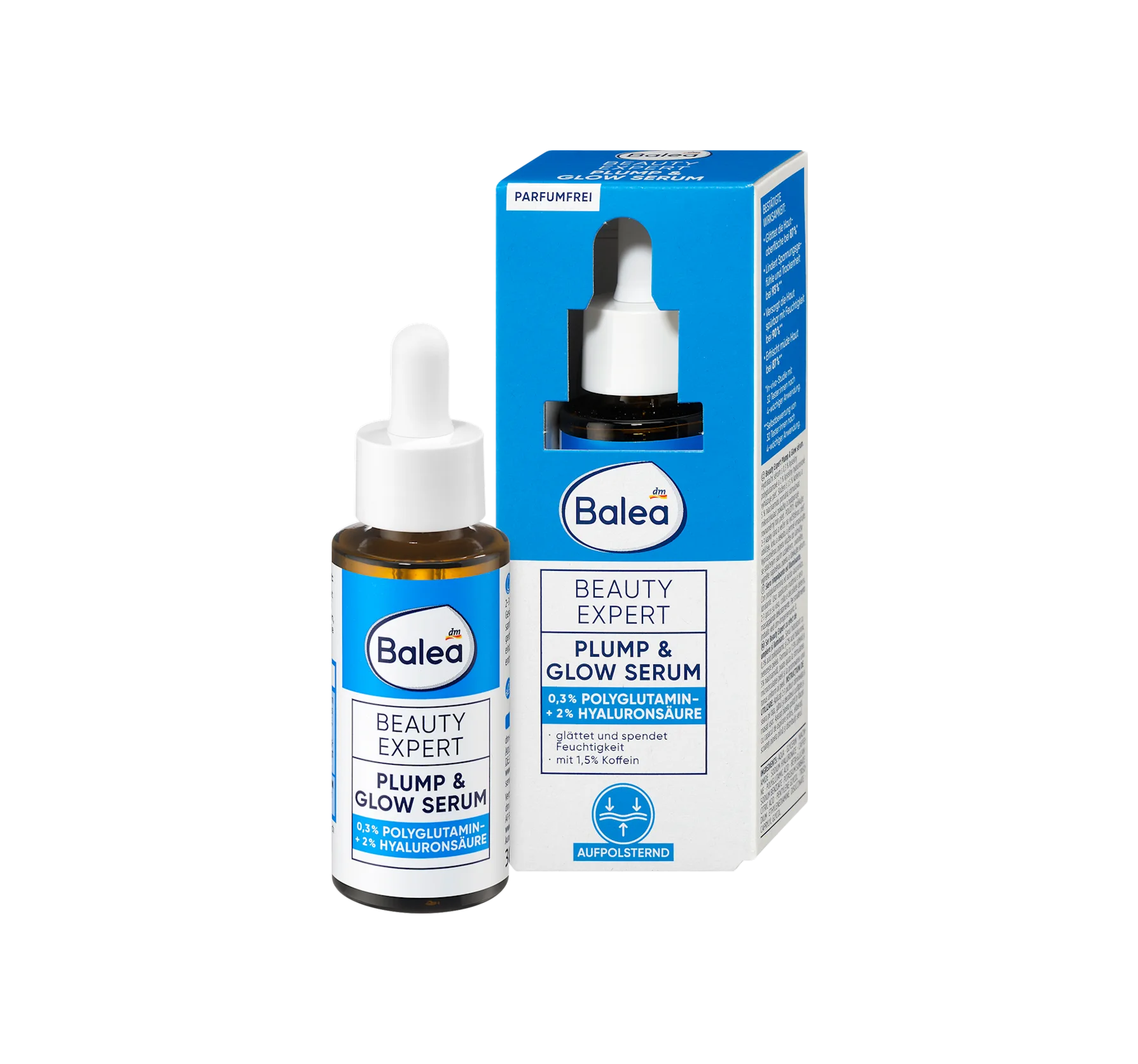 Balea Beauty Expert Serum Plump & Glow 蘊含濃縮成分,有效呵護肌膚,並根據肌膚需求進行優化客製化。聚谷氨酸具有保濕和鎖水功效,可在肌膚表面形成一層隱形薄膜,防止水分流失。透明質酸由三種不同分子量組成,可提供強效保濕。低分子量玻尿酸可深入滲透肌膚,帶來豐盈效果。中分子量及高分子量玻尿酸則可提供強效保濕護理。讓肌膚更飽滿柔滑**。這款豐盈精華液...