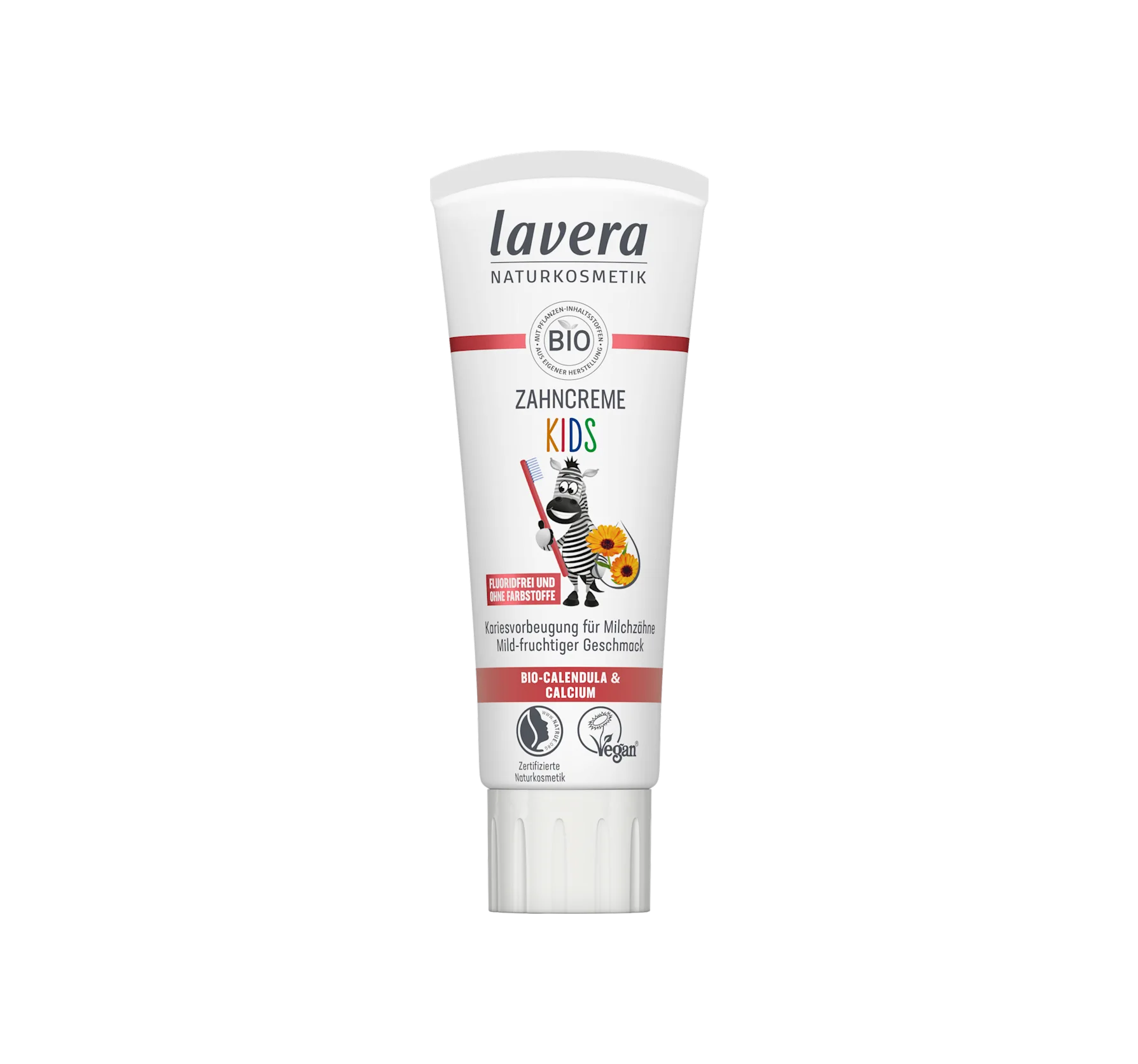 預防乳牙蛀牙。蘊含有機金盞花和鈣。蘊含拉維拉綠色預防複合物。拉維拉兒童牙膏不含氟,呵護乳牙*。它能去除牙菌斑,預防蛀牙,保護牙齦,並帶有溫和的水果香味。高效無氟配方,蘊含獨特的鈣質活性成分,有助於琺瑯質的再礦化。 *需定期刷牙。本牙膏配方不含二氧化鈦。 DM 商品編號:1566710。 GTIN:4021457652310